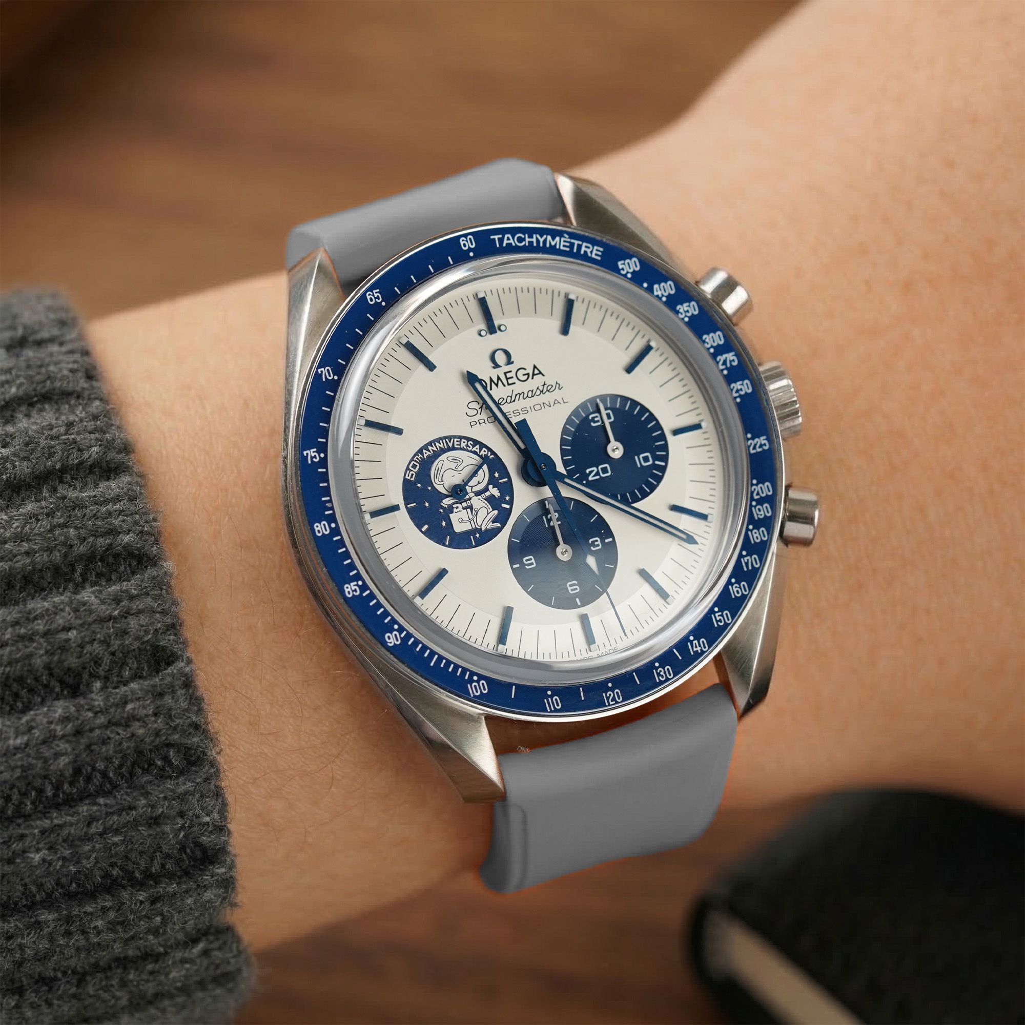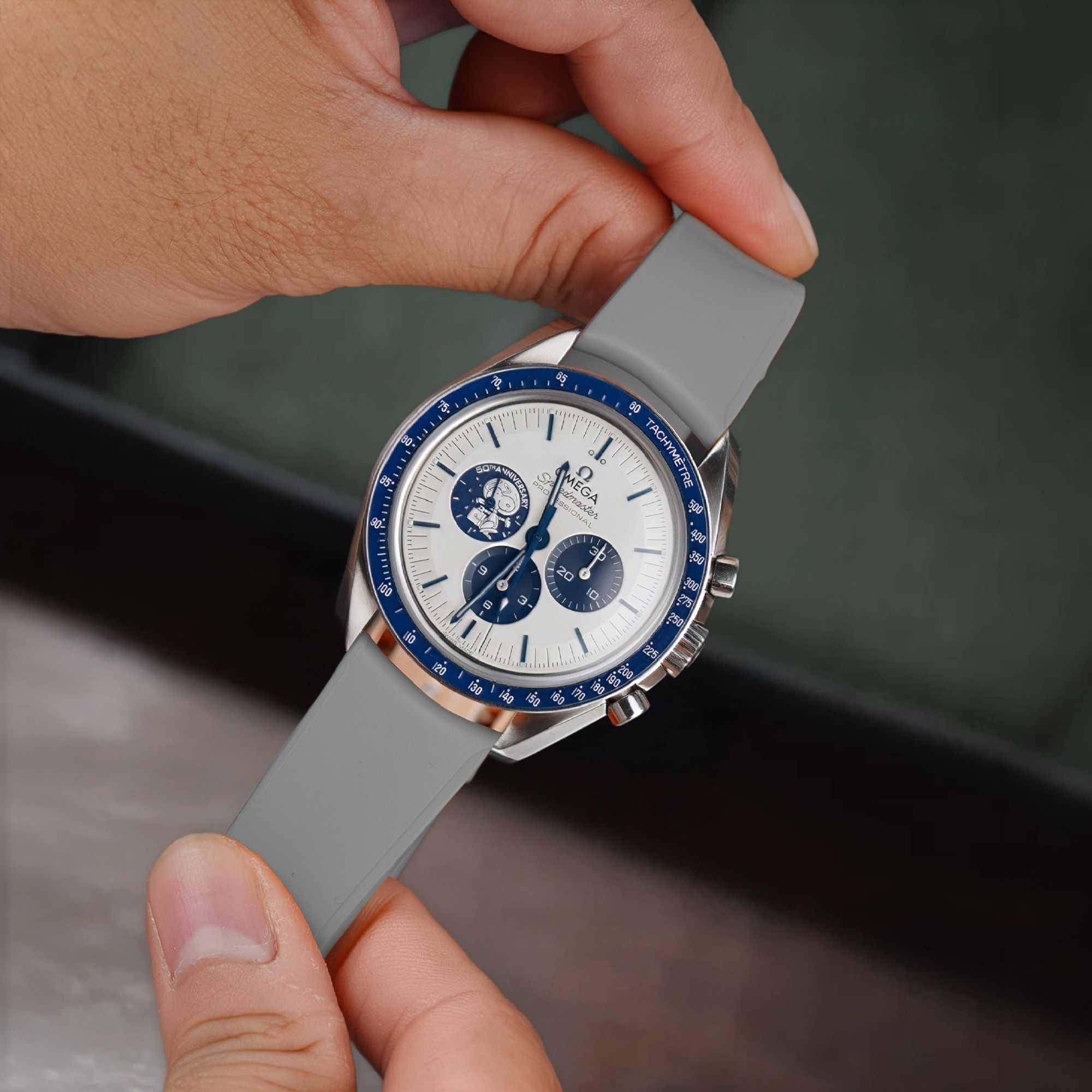 Dây Cao Su Màu Xám Cho Omega Seamaster Diver 300m 42mm Date Cửa Sổ Tại Vị Trí 6 Giờ