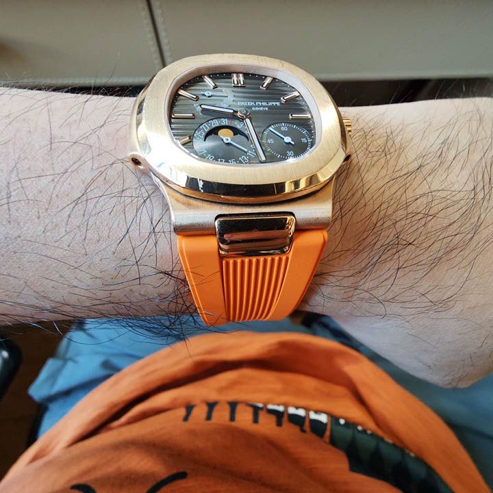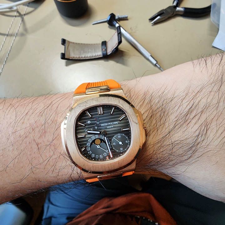 1 đánh giá cho Dây Cao Su Màu Cam Cho Patek Philippe Nautilus 5711 WG .RG .YG Mẫu Dây Kim Loại Kèm Endlink