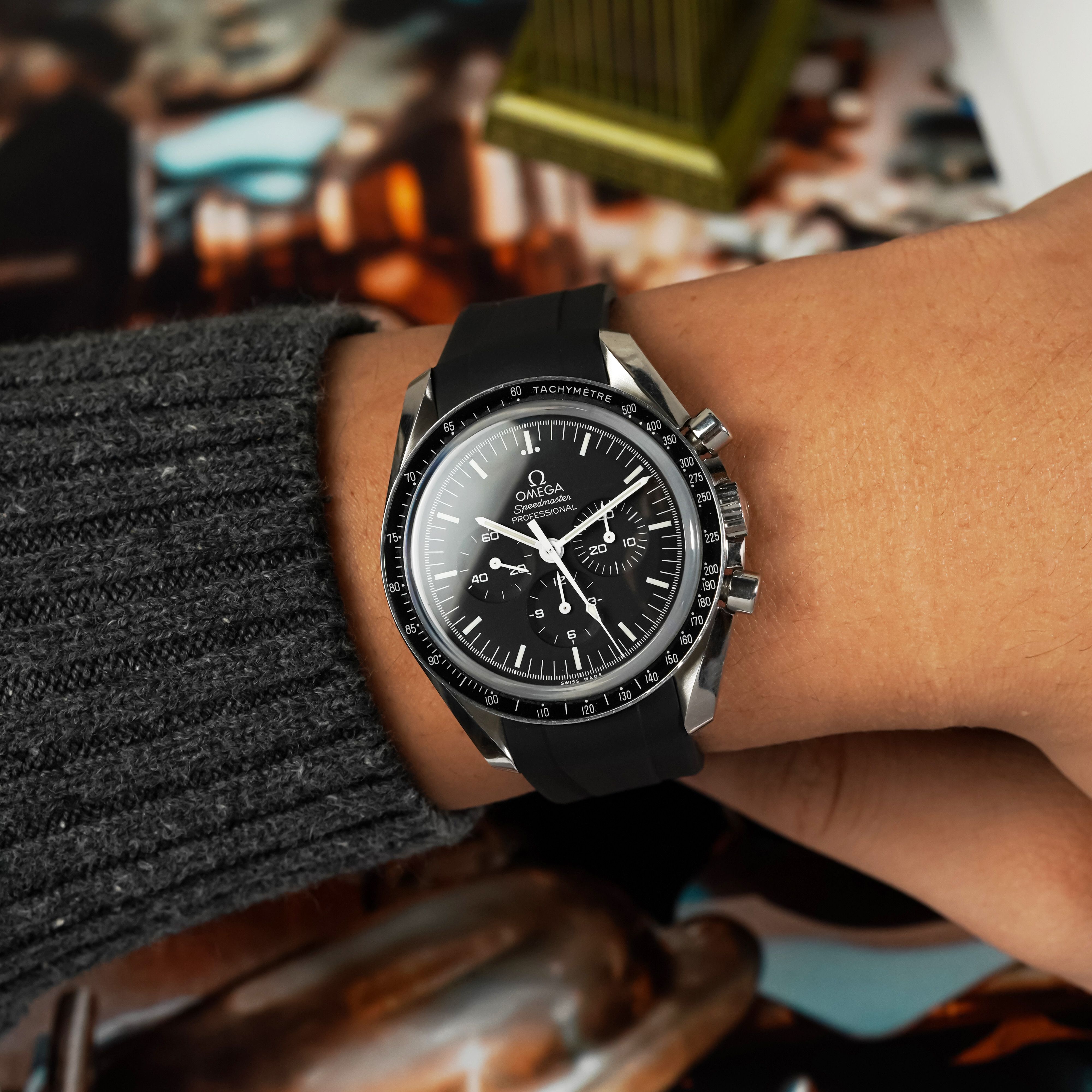 Review Dây Cao Su Màu Đen Cho Omega Speedmaster Moonwatch Chronograph 42 mm