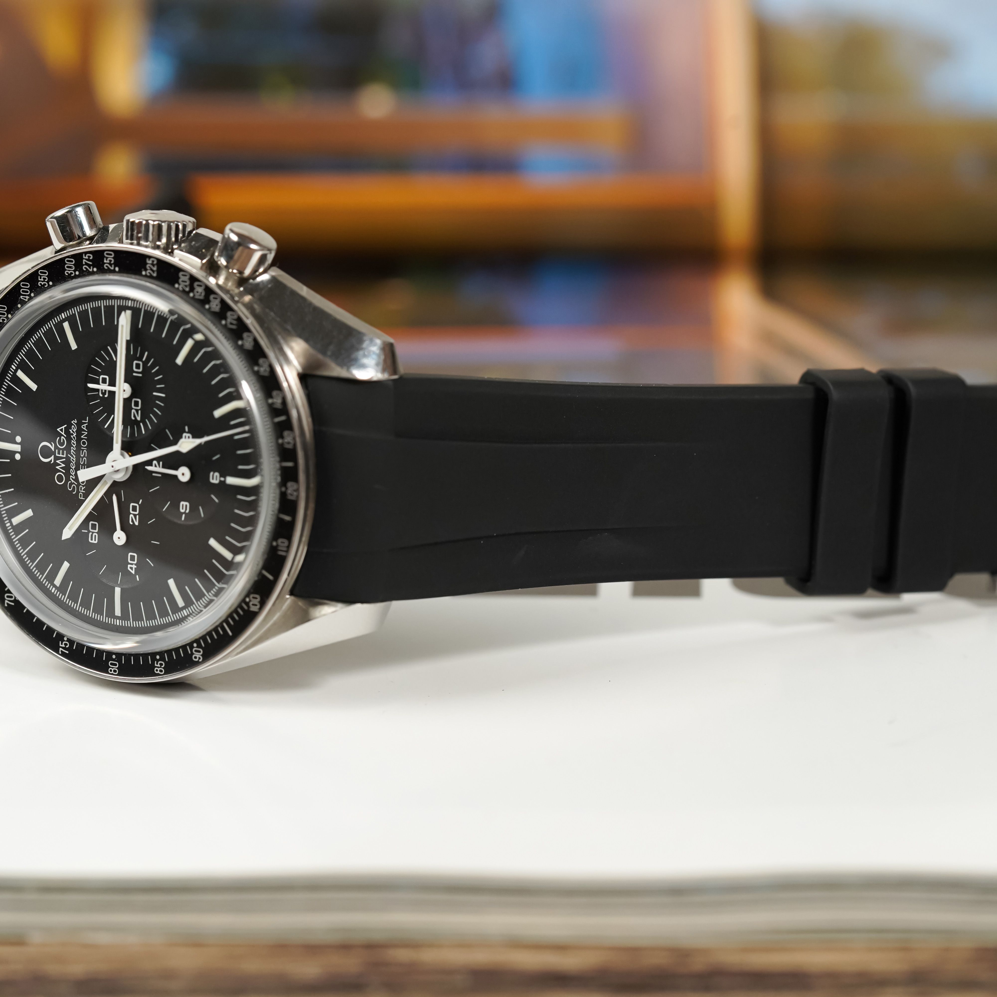 Trang chủ / Dây đồng hồ Omega / Dây Cao Su Màu Đen Cho Omega Speedmaster Moonwatch Chronograph 42 mm