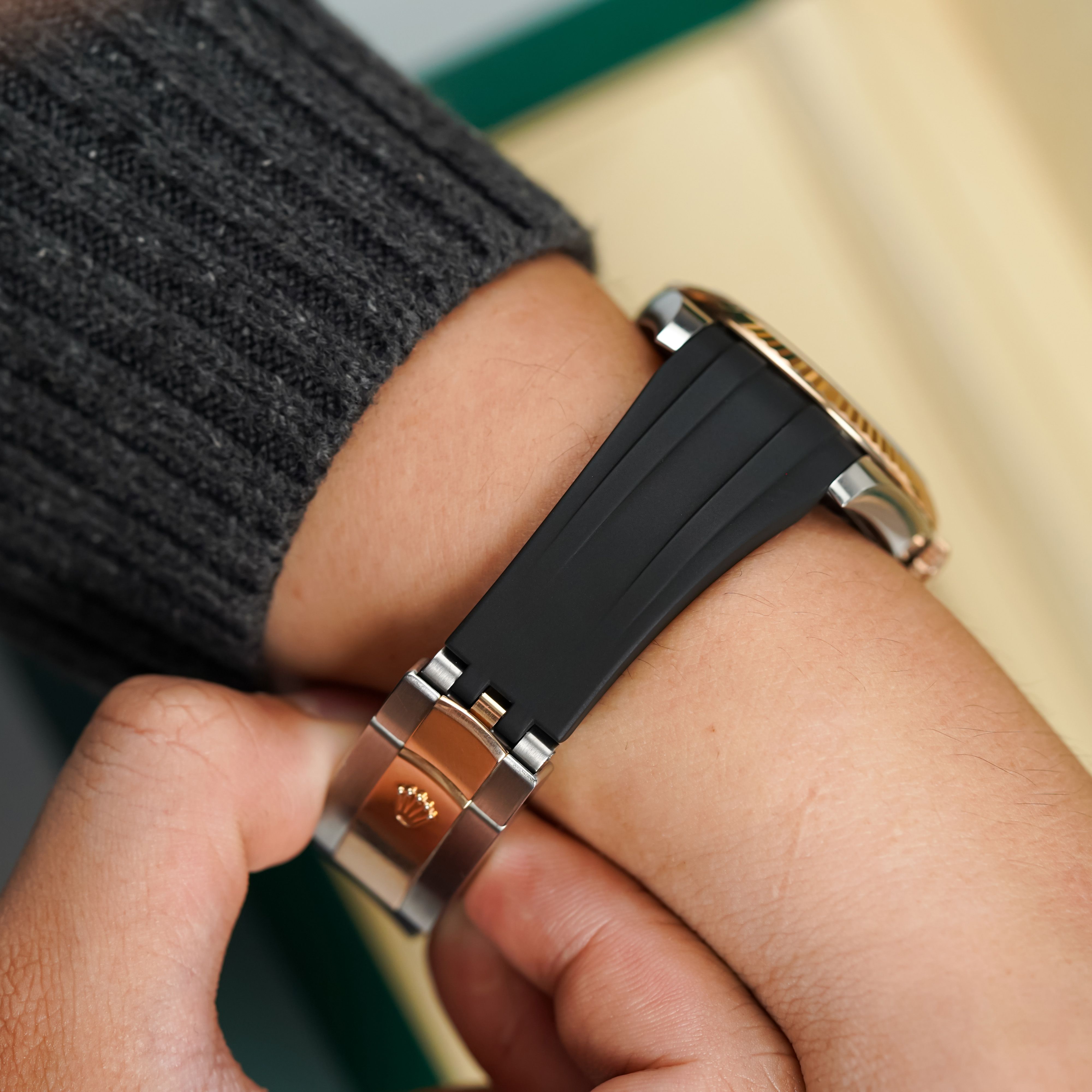 Trang chủ / Dây đồng hồ Rolex / Dây Cao Su Màu Đen Cho Rolex Datejust 41mm 126334 .126300 .126333 Dây Jubilee 5 mảnh