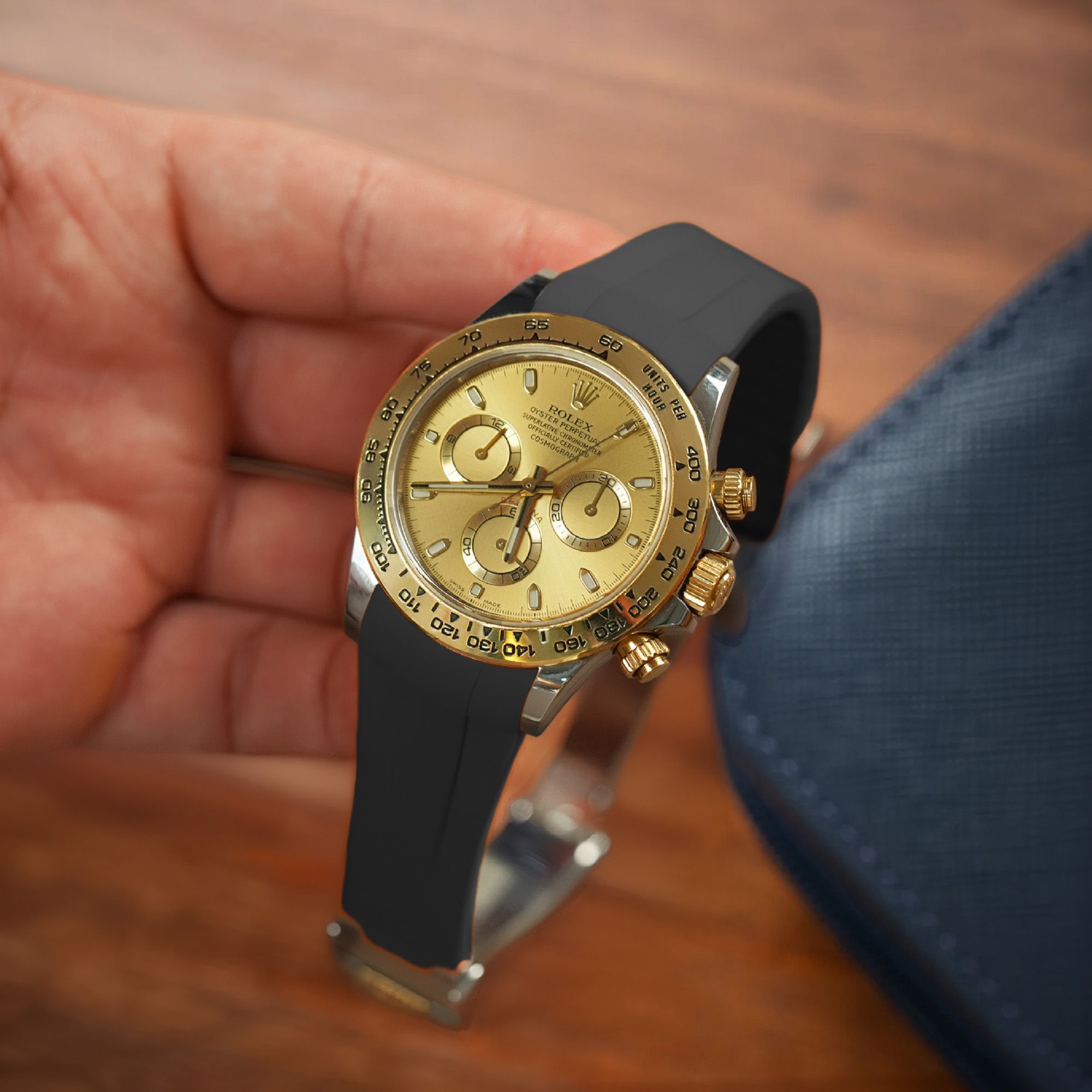 Review Dây Cao Su Màu Đen nền Xám Cho Rolex Daytona 116503 .116523 (Đầu ôm cong)