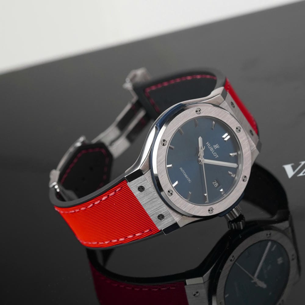 Review Dây Cao Su Màu Đỏ Cho Hublot Classic Fusion Chronograph Titanium 42/45mm (Vân thẳng)