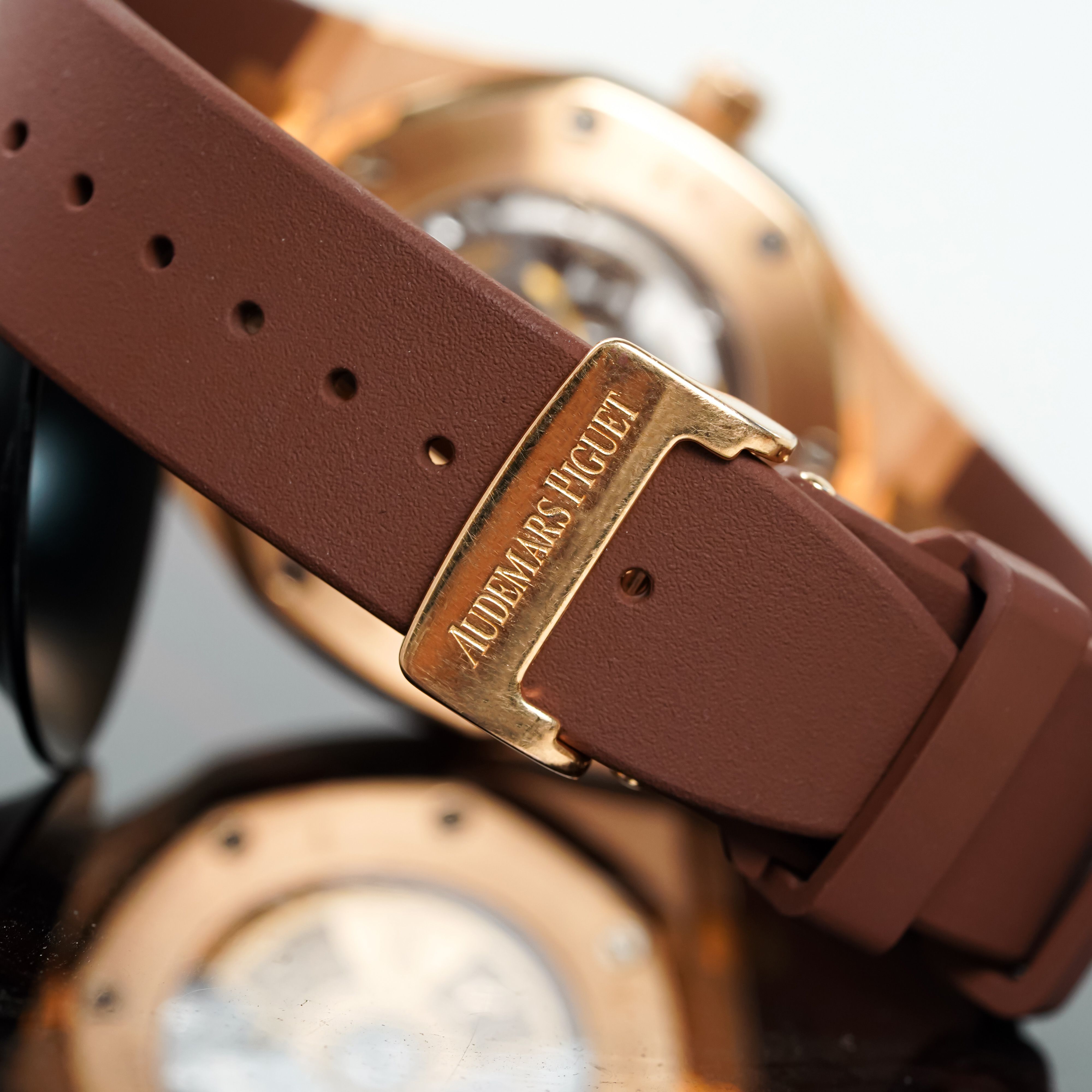 Trang chủ / Dây đồng hồ Audemars Piguet / Dây Cao Su Màu Nâu Cho AP Royal Oak 39mm 15300 Or
