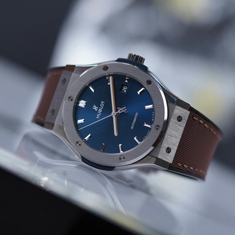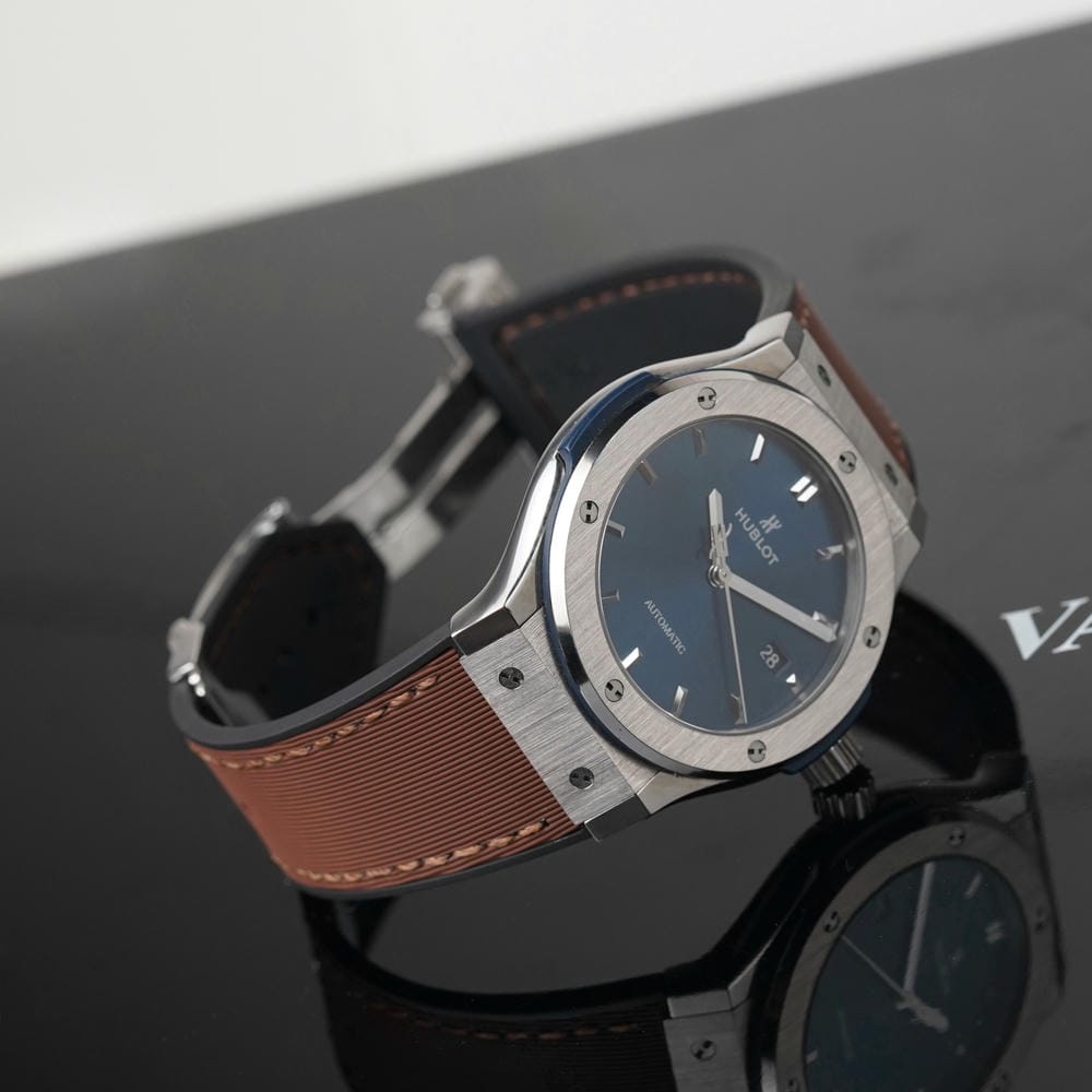 Review Dây Cao Su Màu Nâu Cho Hublot Classic Fusion 3-Hands 42/45mm (Vân thẳng)