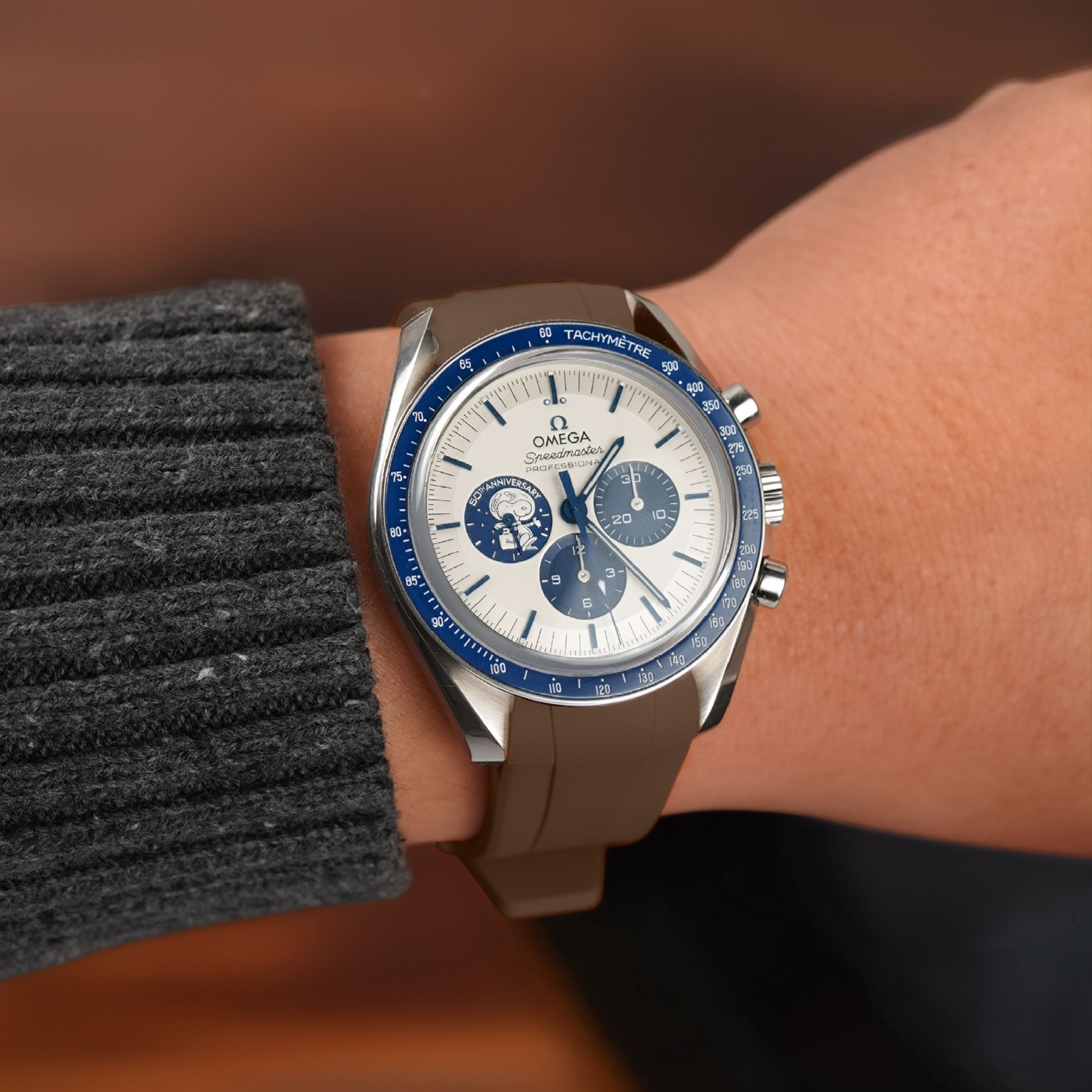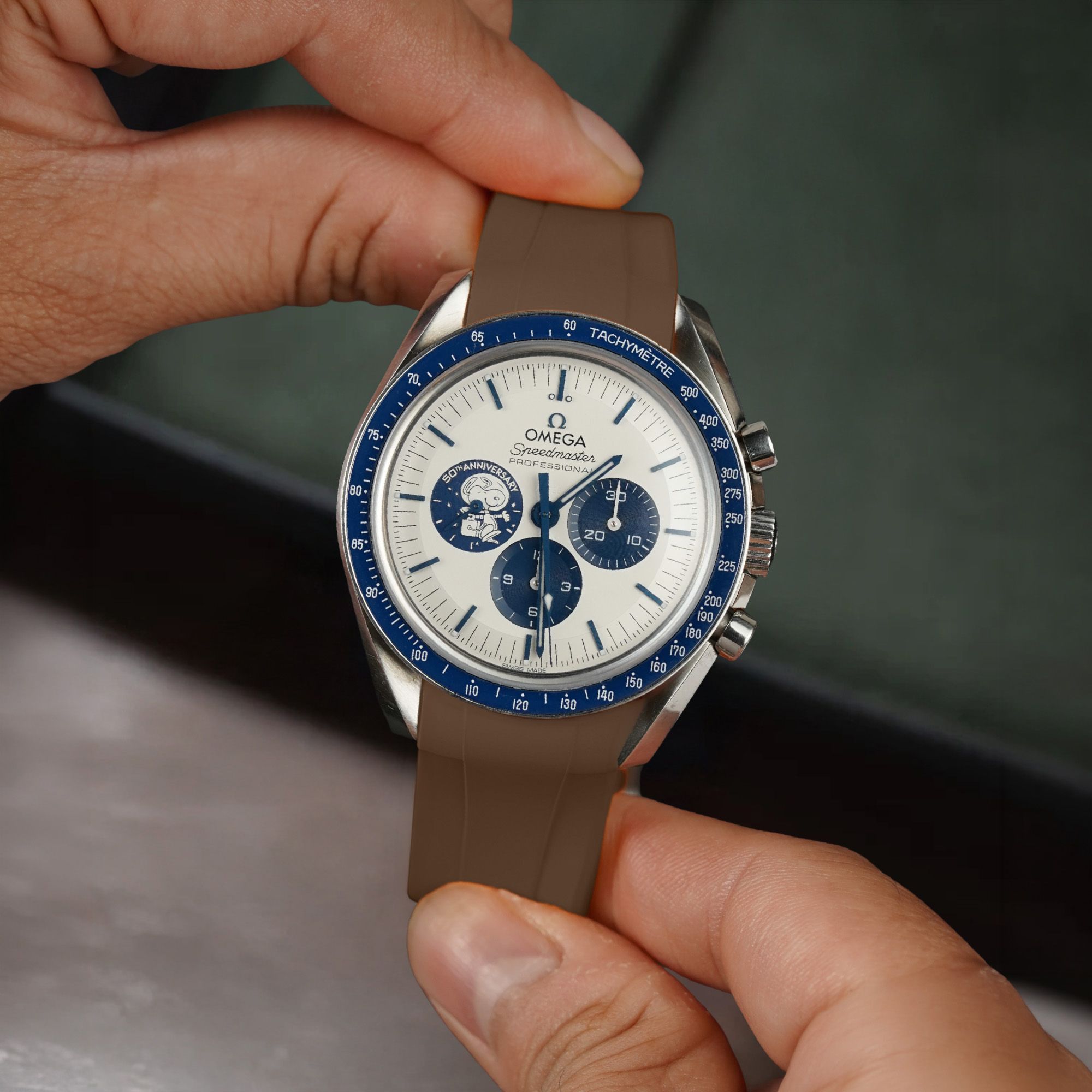 Trang chủ / Dây đồng hồ Omega / Dây Cao Su Màu Nâu Cho Omega Speedmaster Moonwatch Chronograph 42 mm