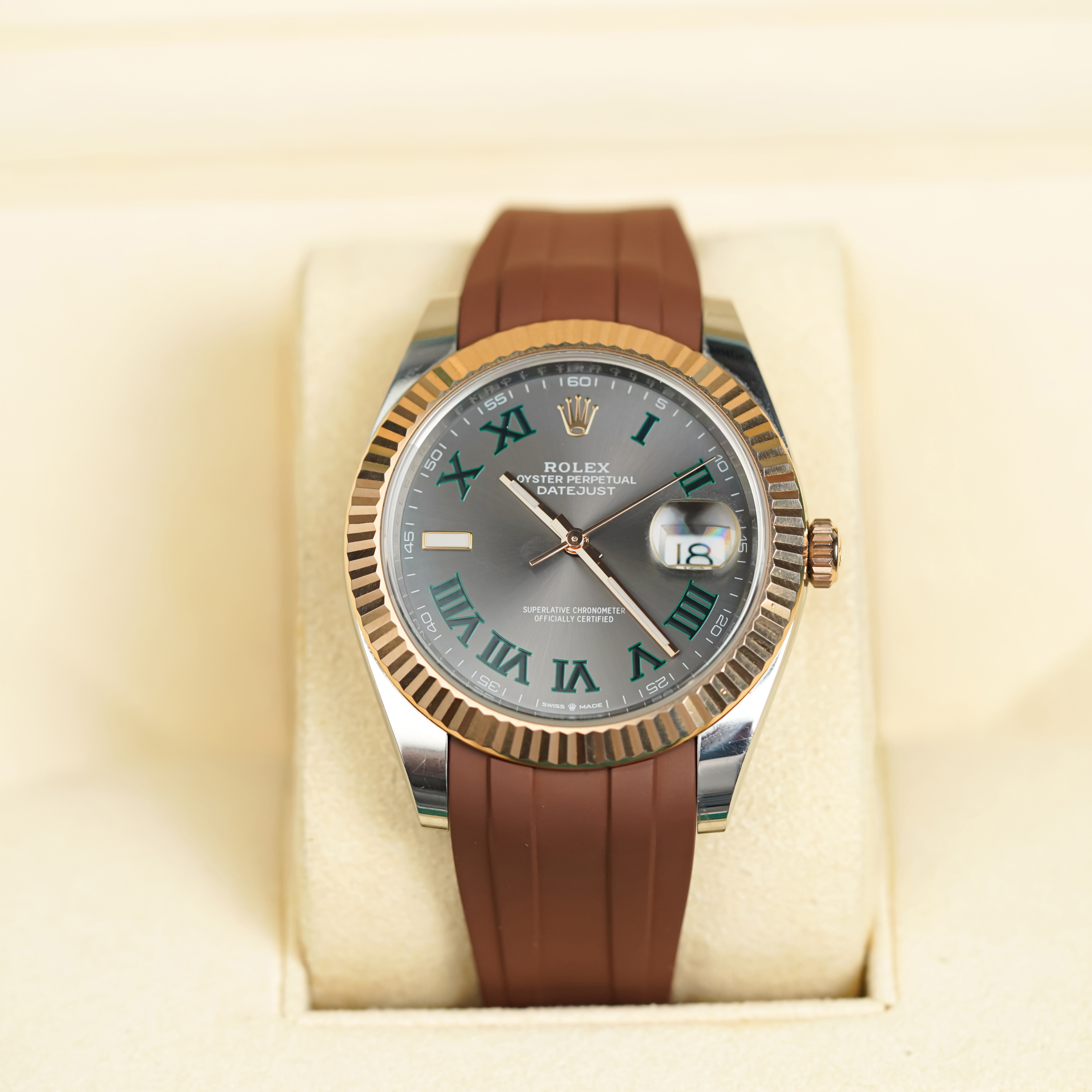 Trang chủ / Dây đồng hồ Rolex / Dây Cao Su Màu Nâu Cho Rolex Datejust 41mm 126334 .126300 .126333 Dây Jubilee 5 mảnh