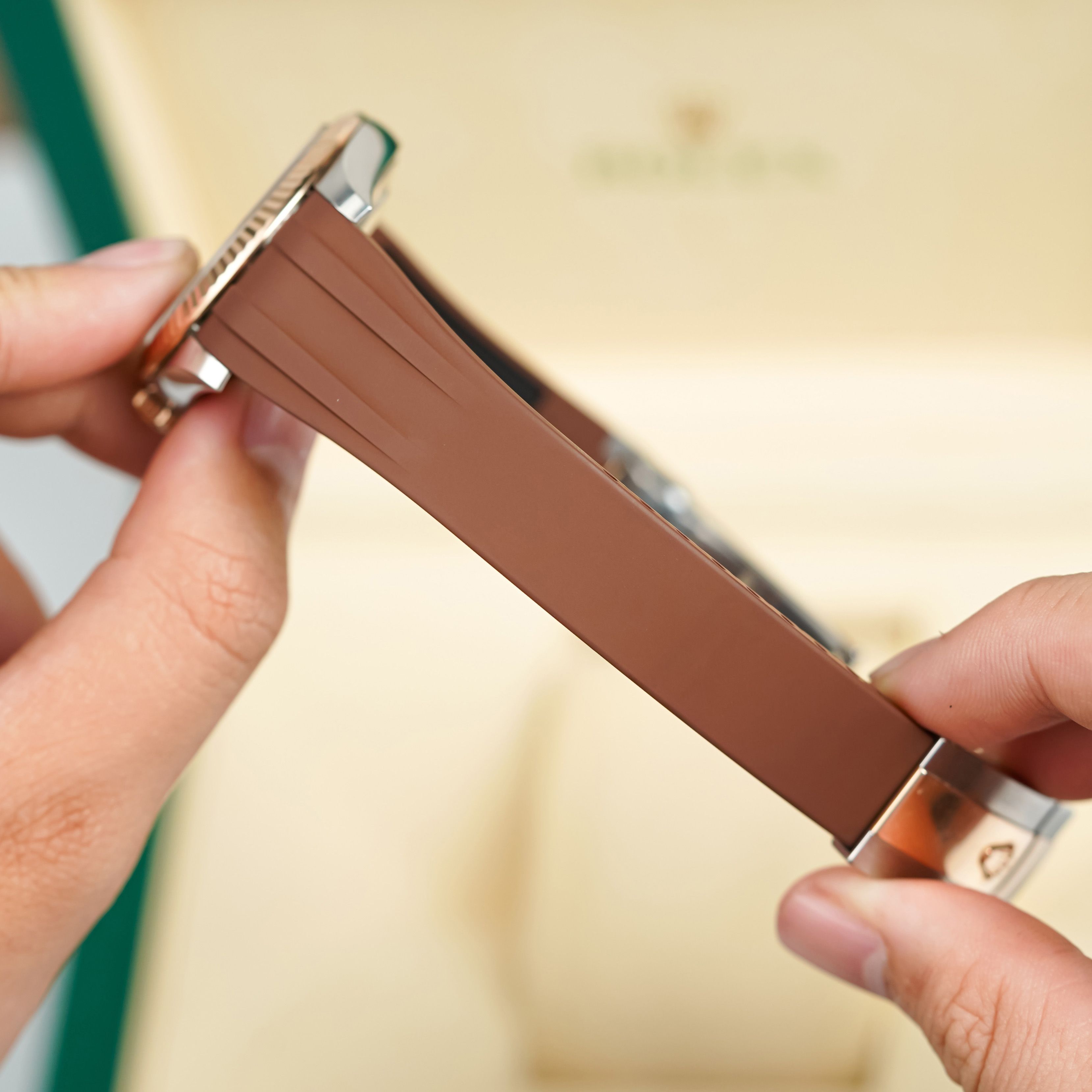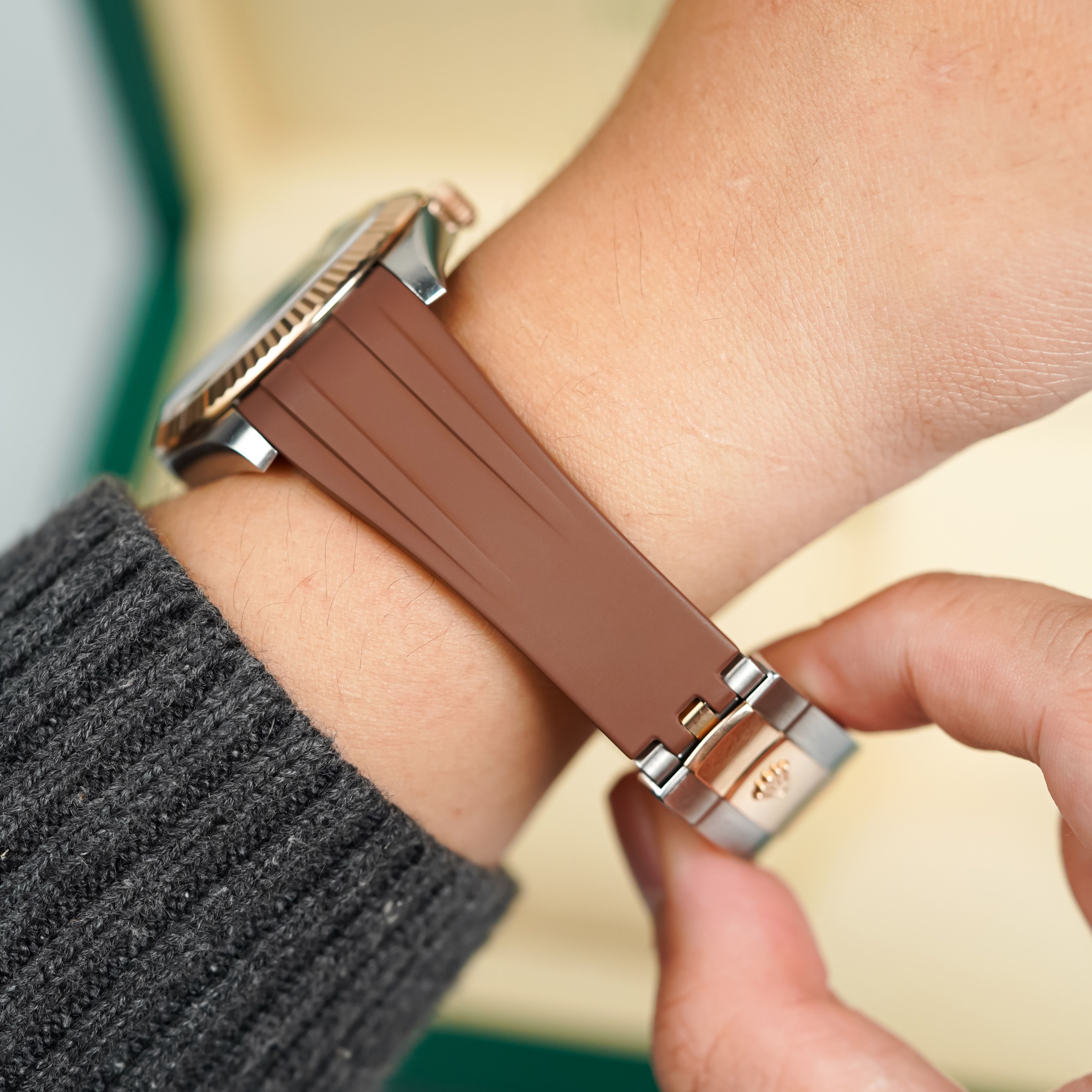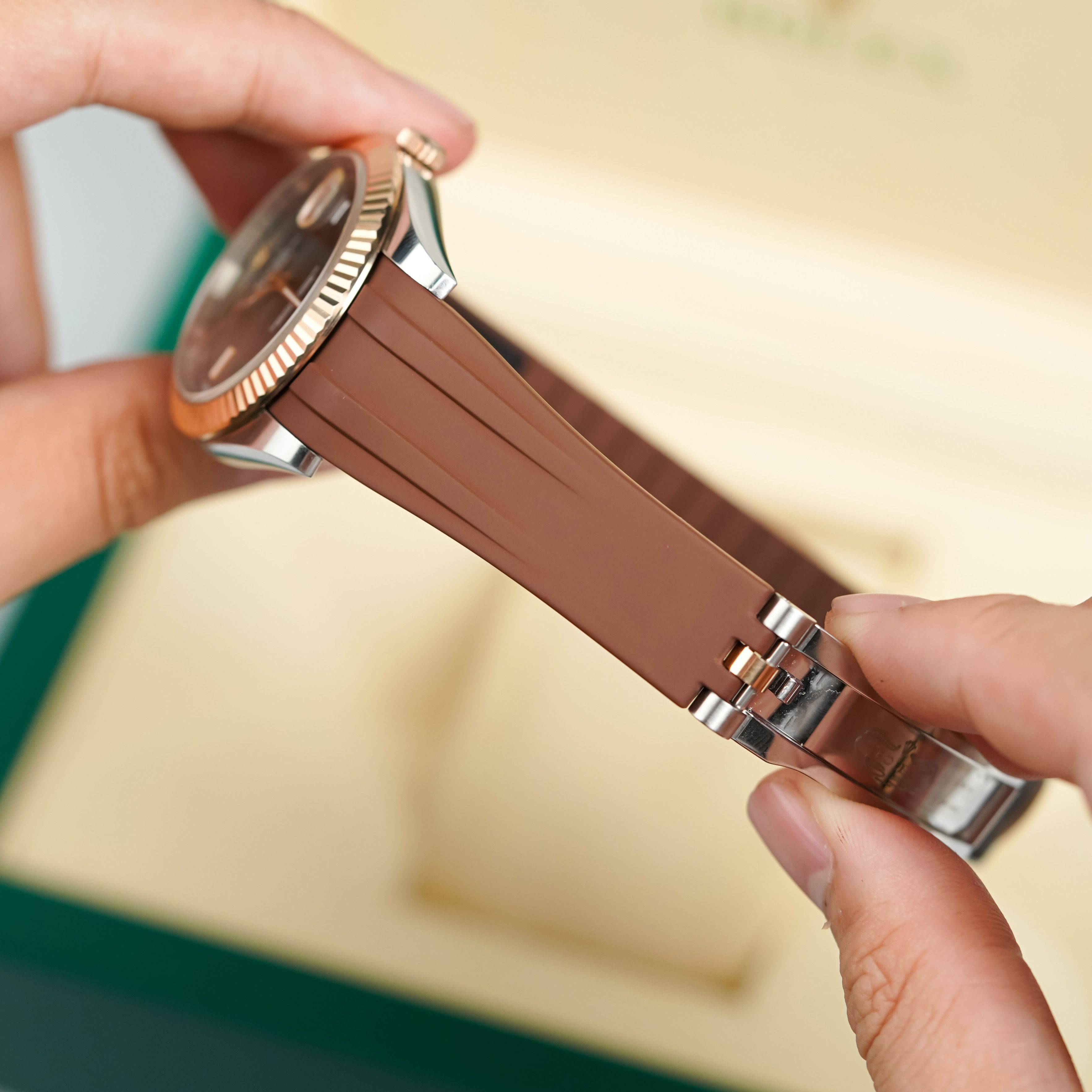 Review Dây Cao Su Màu Nâu Cho Rolex Datejust 41mm 126334 .126300 .126333 Dây Jubilee 5 mảnh