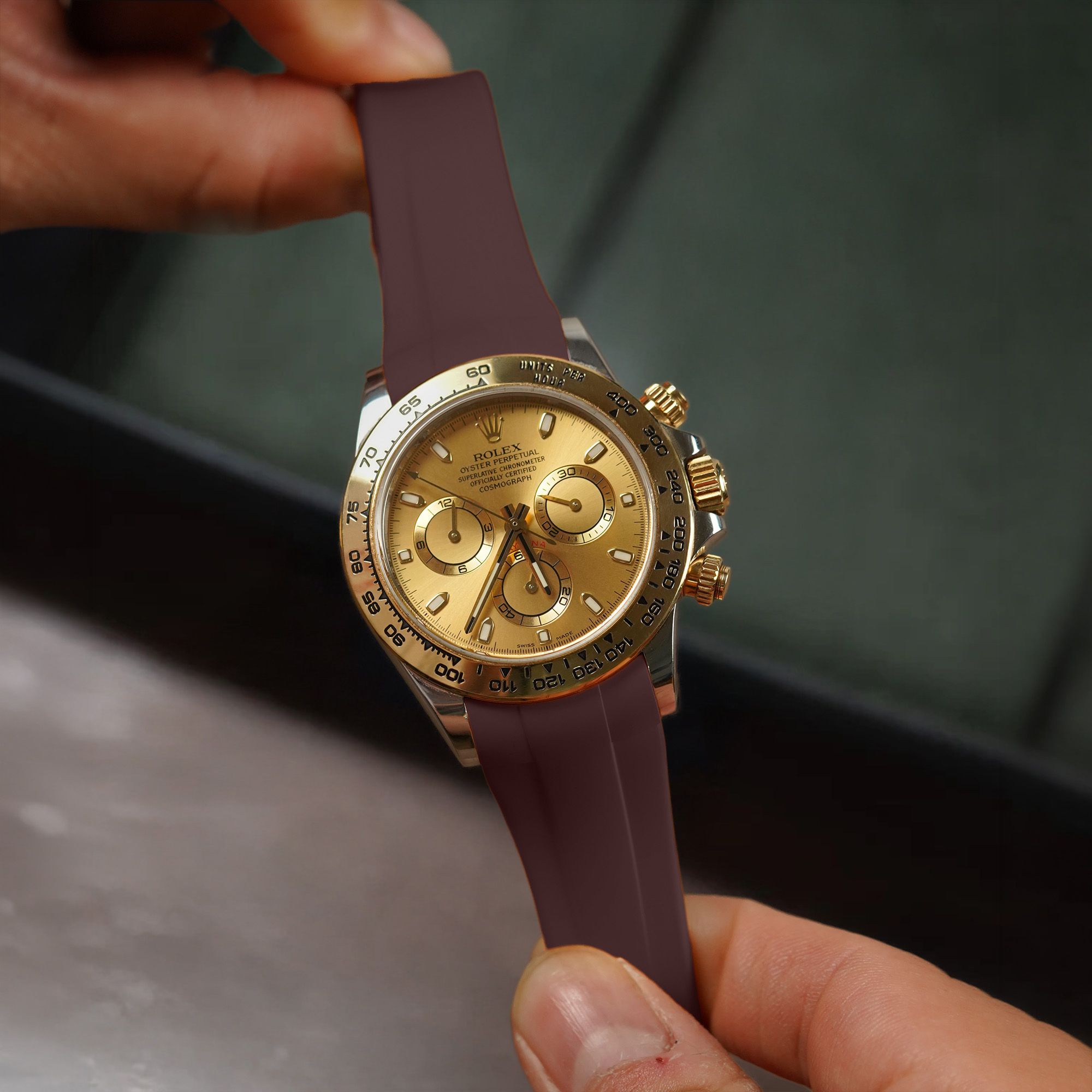 Review Dây Cao Su Màu Nâu nền Đen Cho Rolex Daytona 116503 .116523 (Đầu ôm cong)