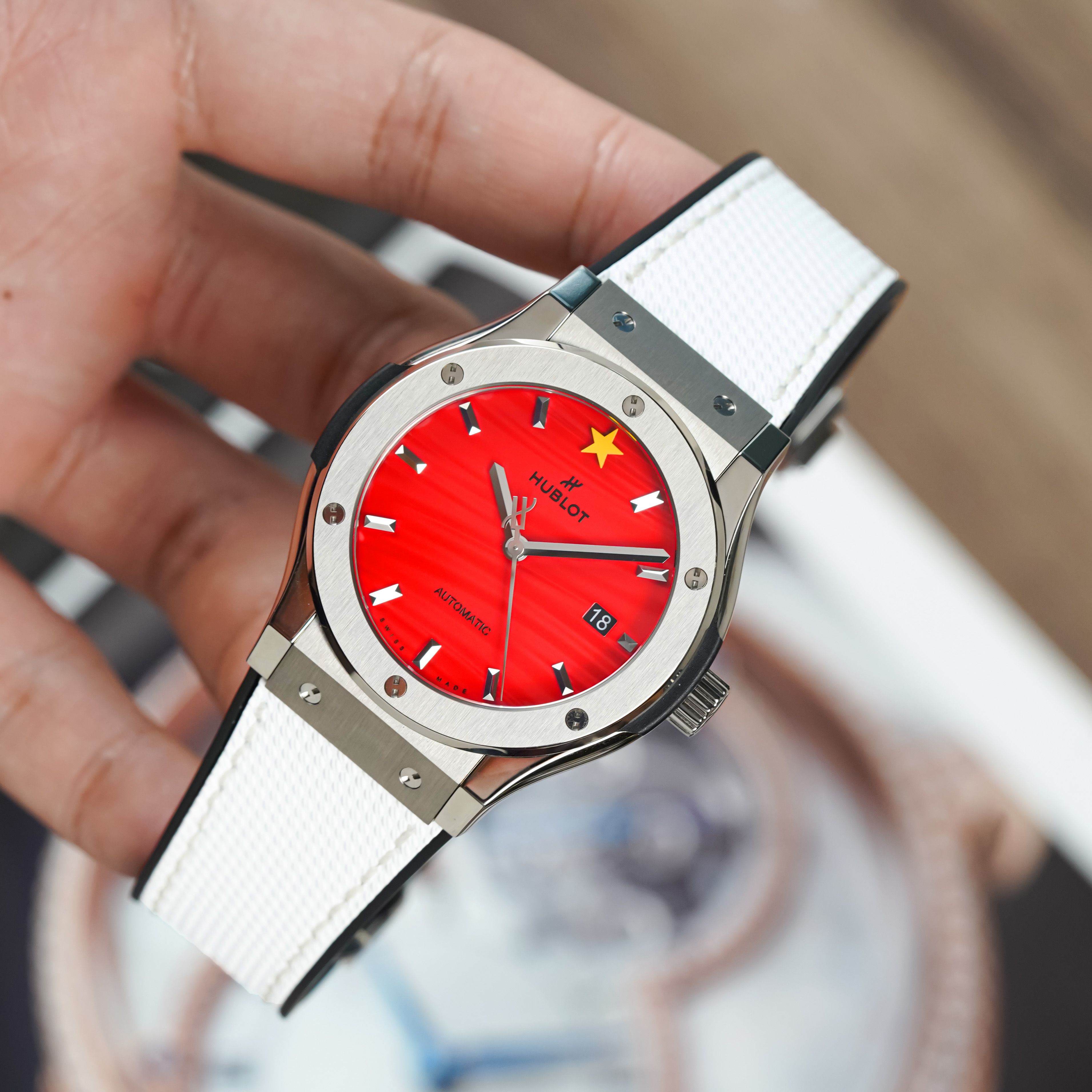 Review Dây Cao Su Màu Trắng Cho Hublot Classic Fusion 3-Hands 42/45mm (Vân chéo)