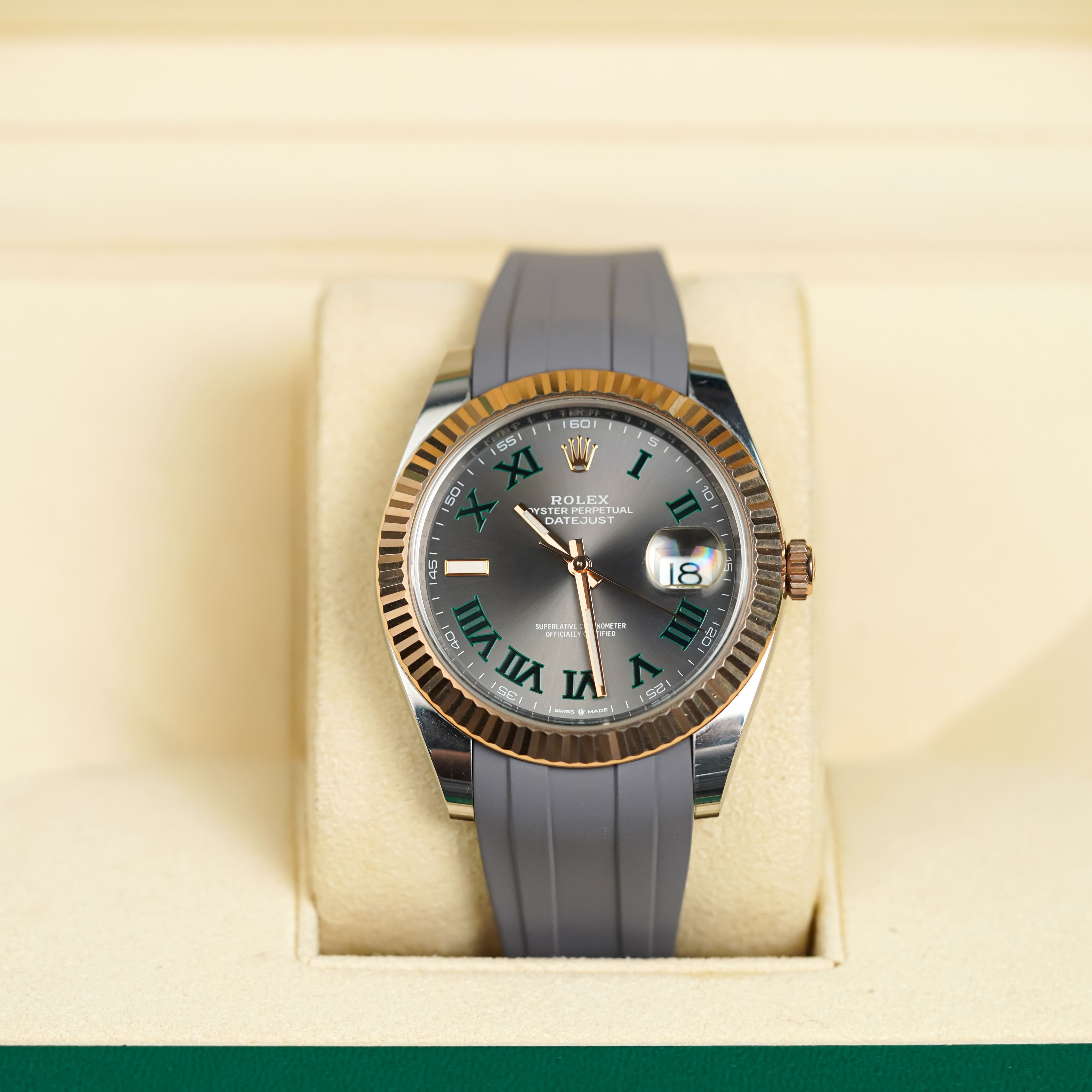 Trang chủ / Dây đồng hồ Rolex / Dây Cao Su Màu Xám Cho Rolex Datejust 41mm 126334 .126300 .126333 Dây Jubilee 5 mảnh