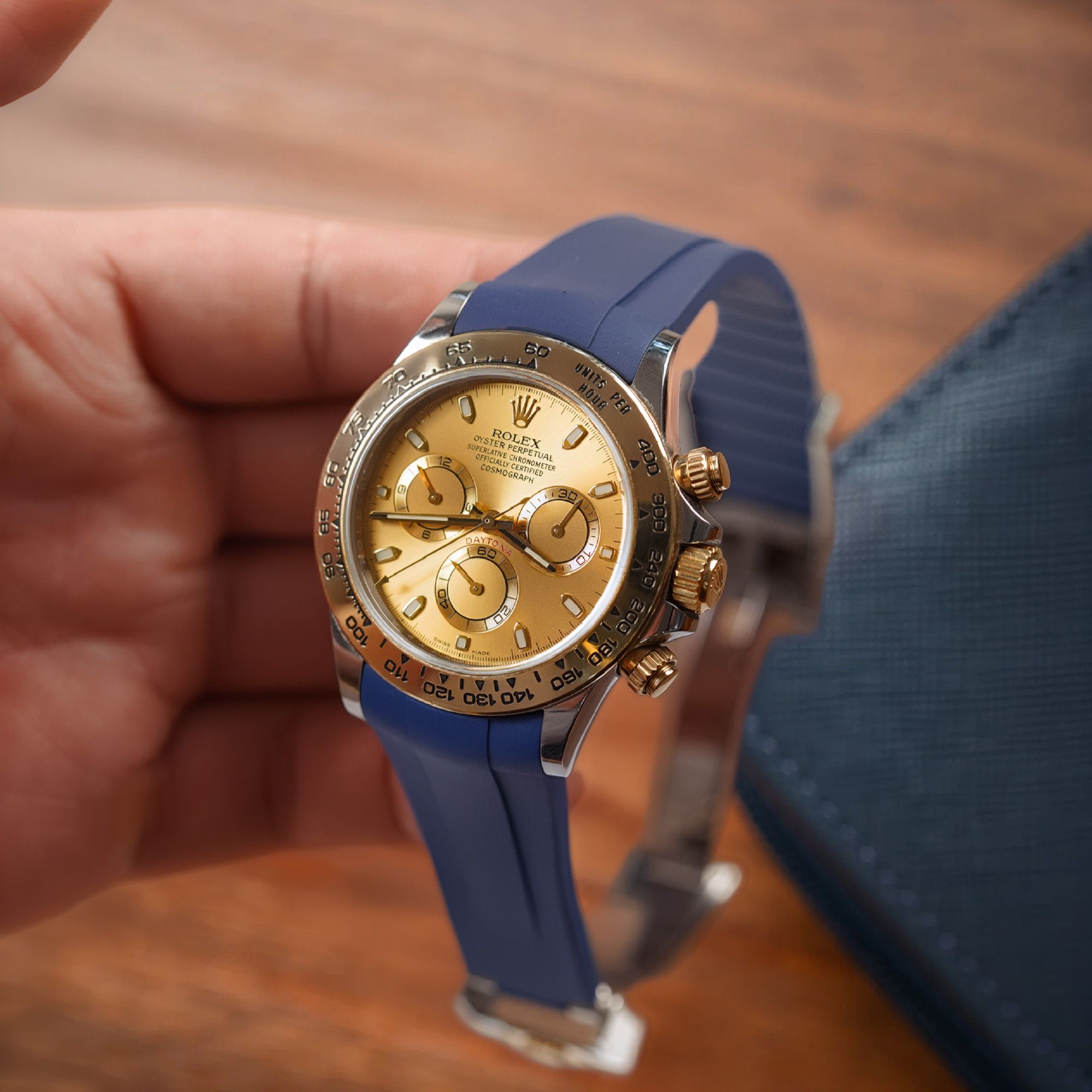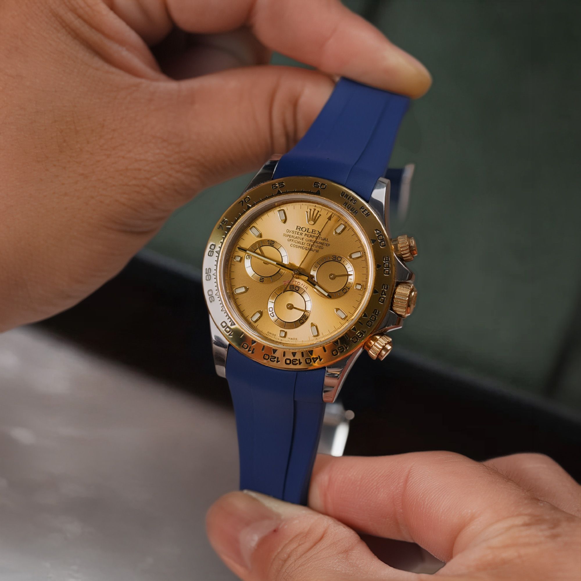 Review Dây Cao Su Màu Xanh Dương Cho Rolex Daytona 116503 .116523 (Đầu ôm cong)