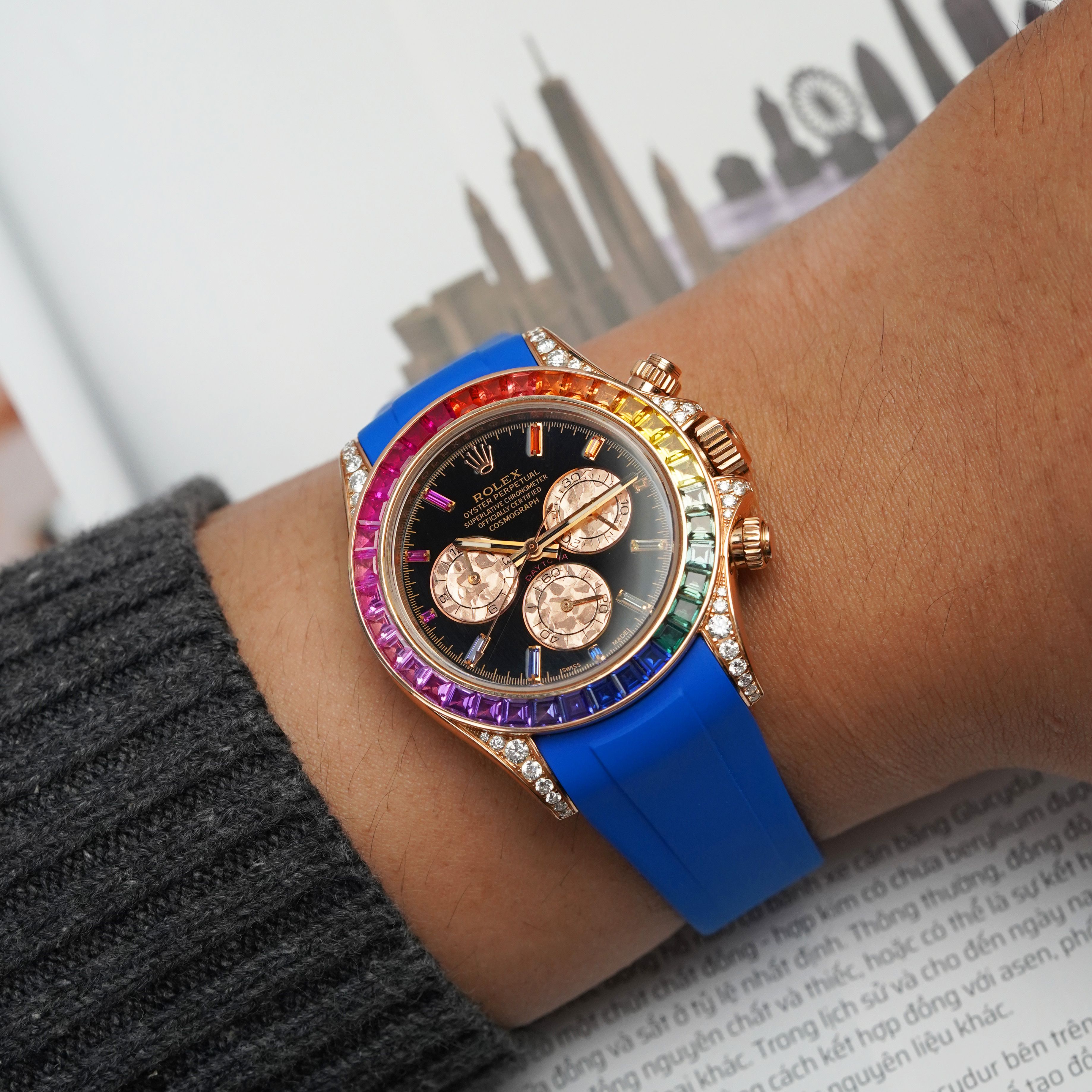 Review Dây Cao Su Màu Xanh Dương Cho Rolex Daytona 126509