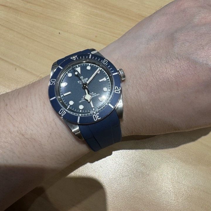Trang chủ / Dây đồng hồ Tudor Black Bay / Dây Cao Su Màu Xanh Dương Cho Tudor 1958 Vỏ Thép 39mm Kèm Endlink Và Khóa Gập