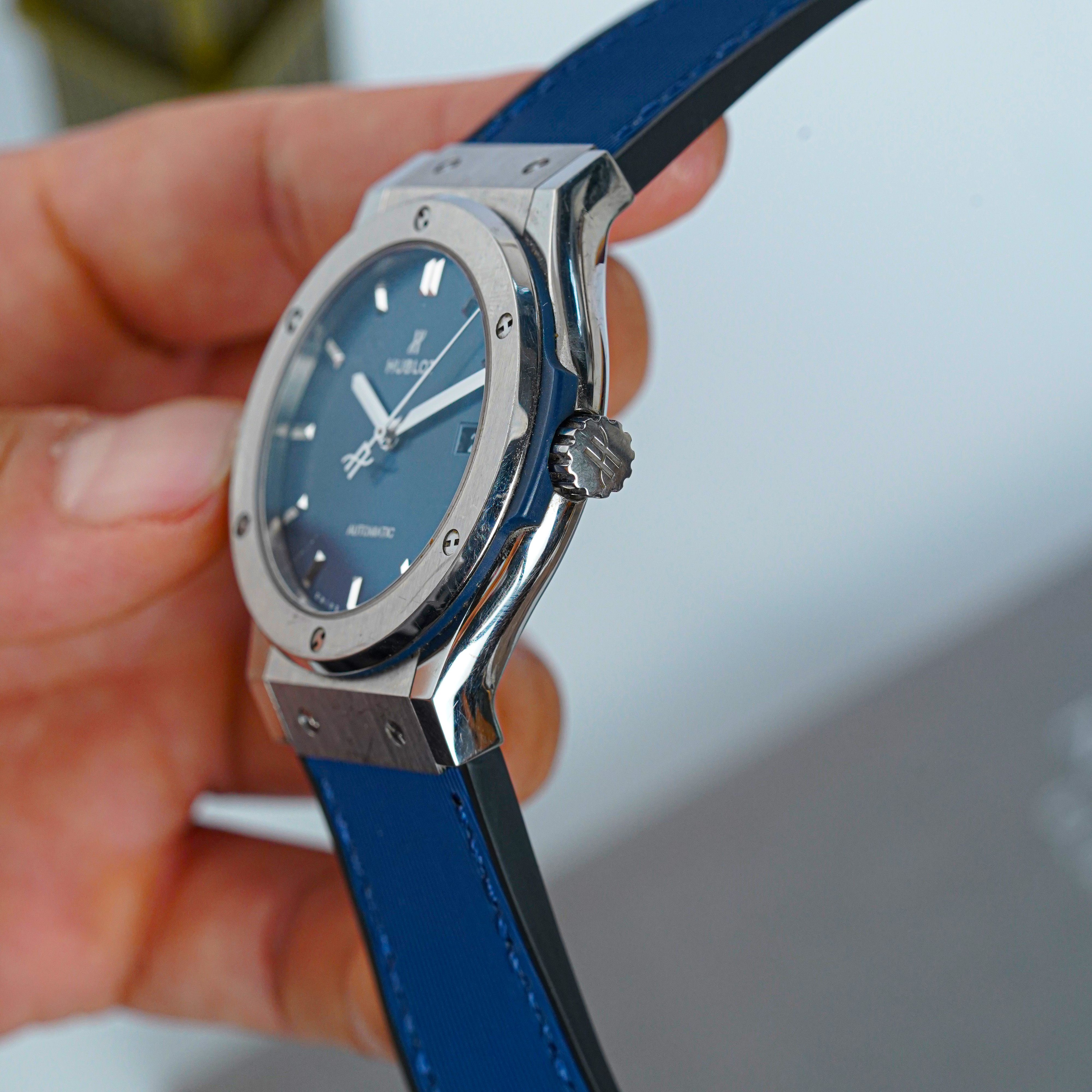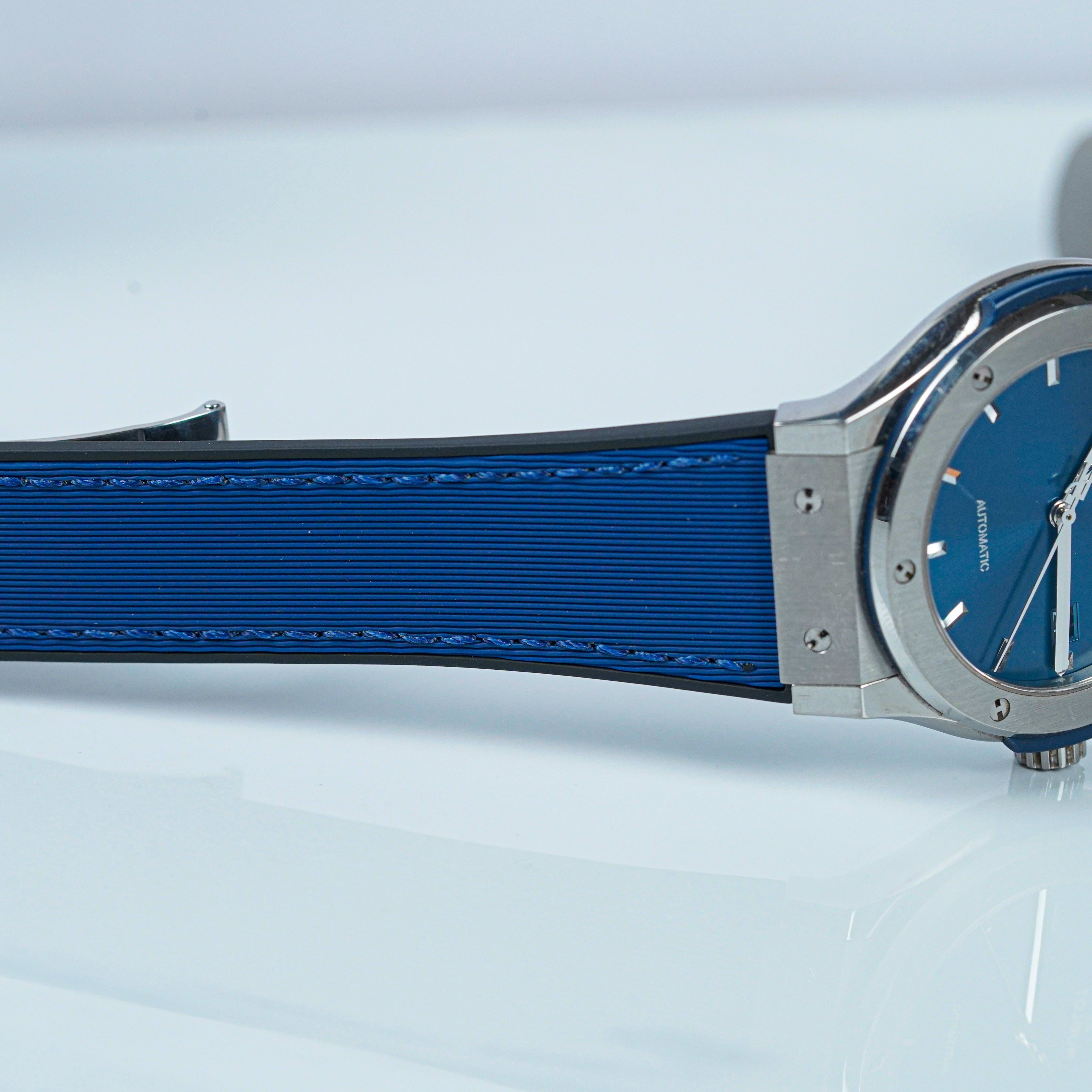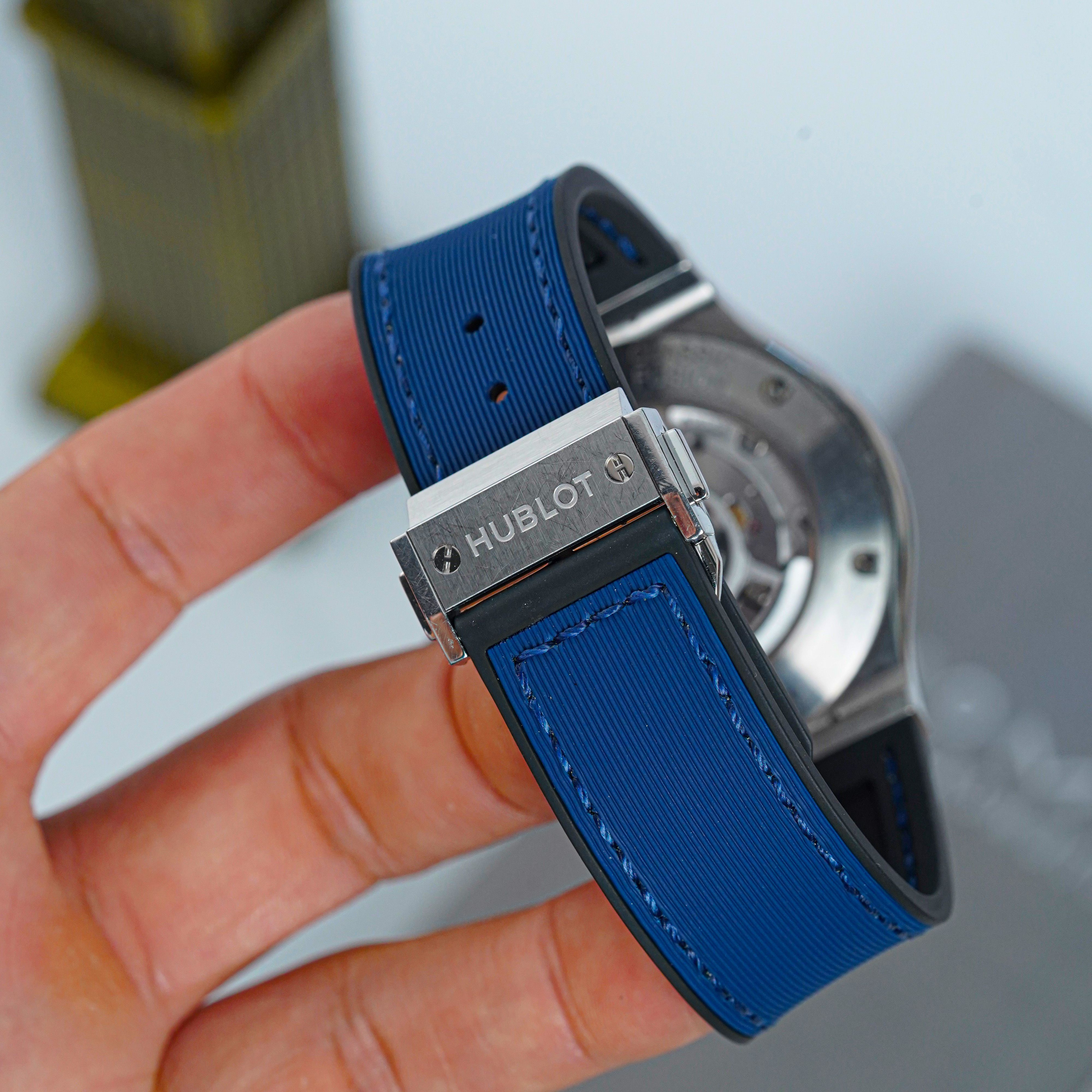 Review Dây Cao Su Màu Xanh Dương Nhạt Cho Hublot Classic Fusion 3-Hands 42/45mm (Vân thẳng)