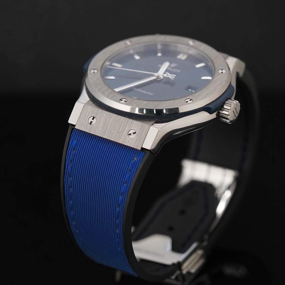 Review Dây Cao Su Màu Xanh Dương Nhạt Cho Hublot Classic Fusion Chronograph Titanium 42/45mm (Vân thẳng)