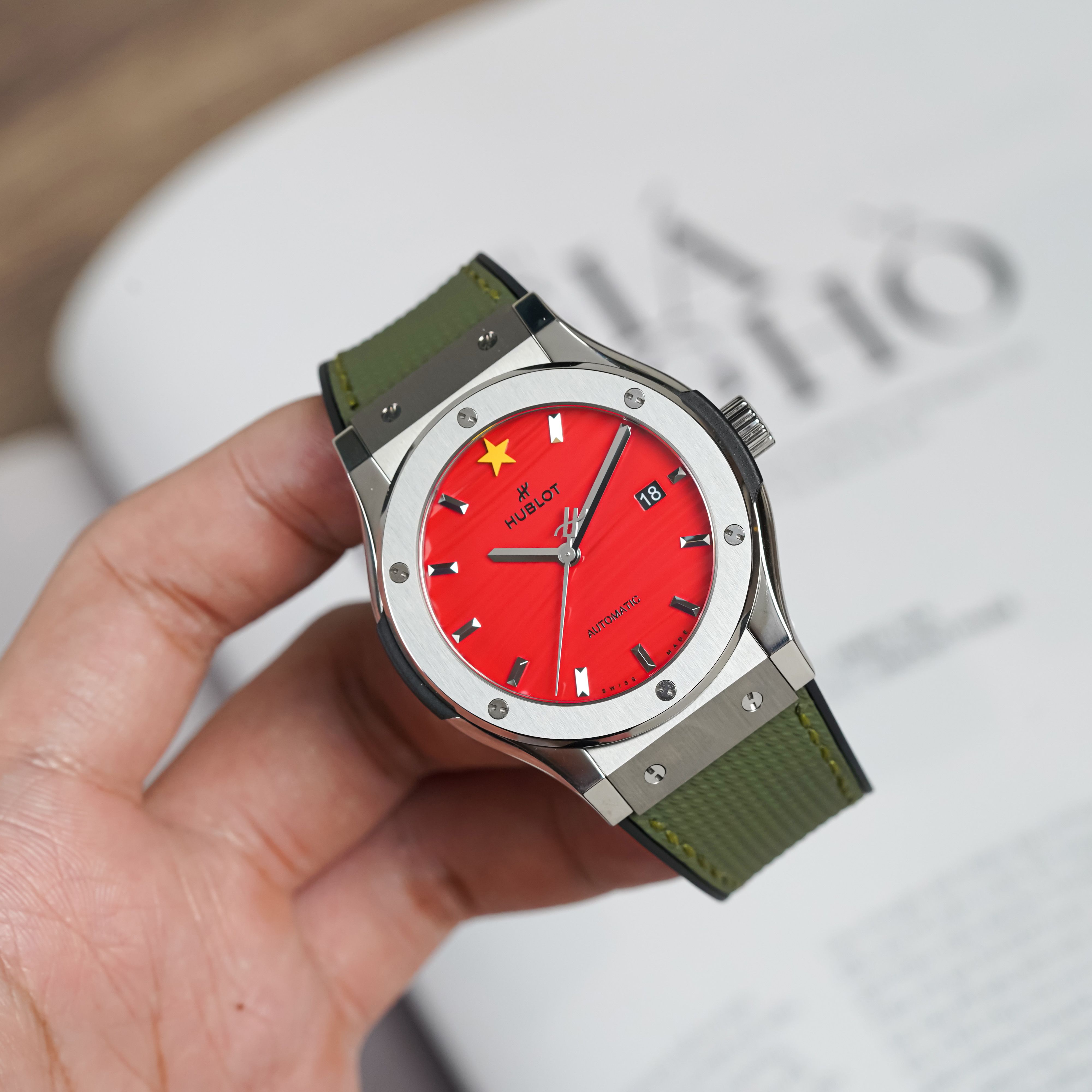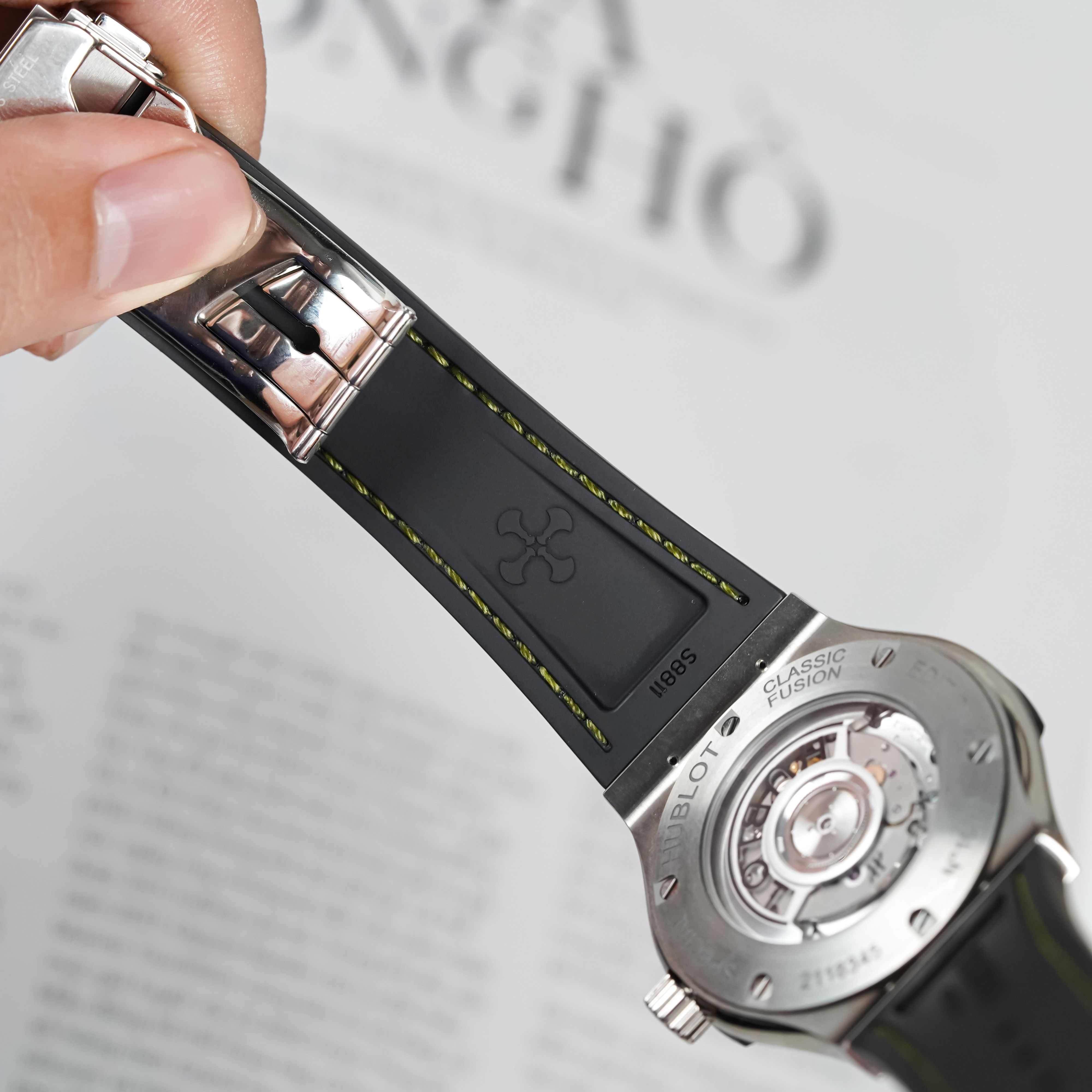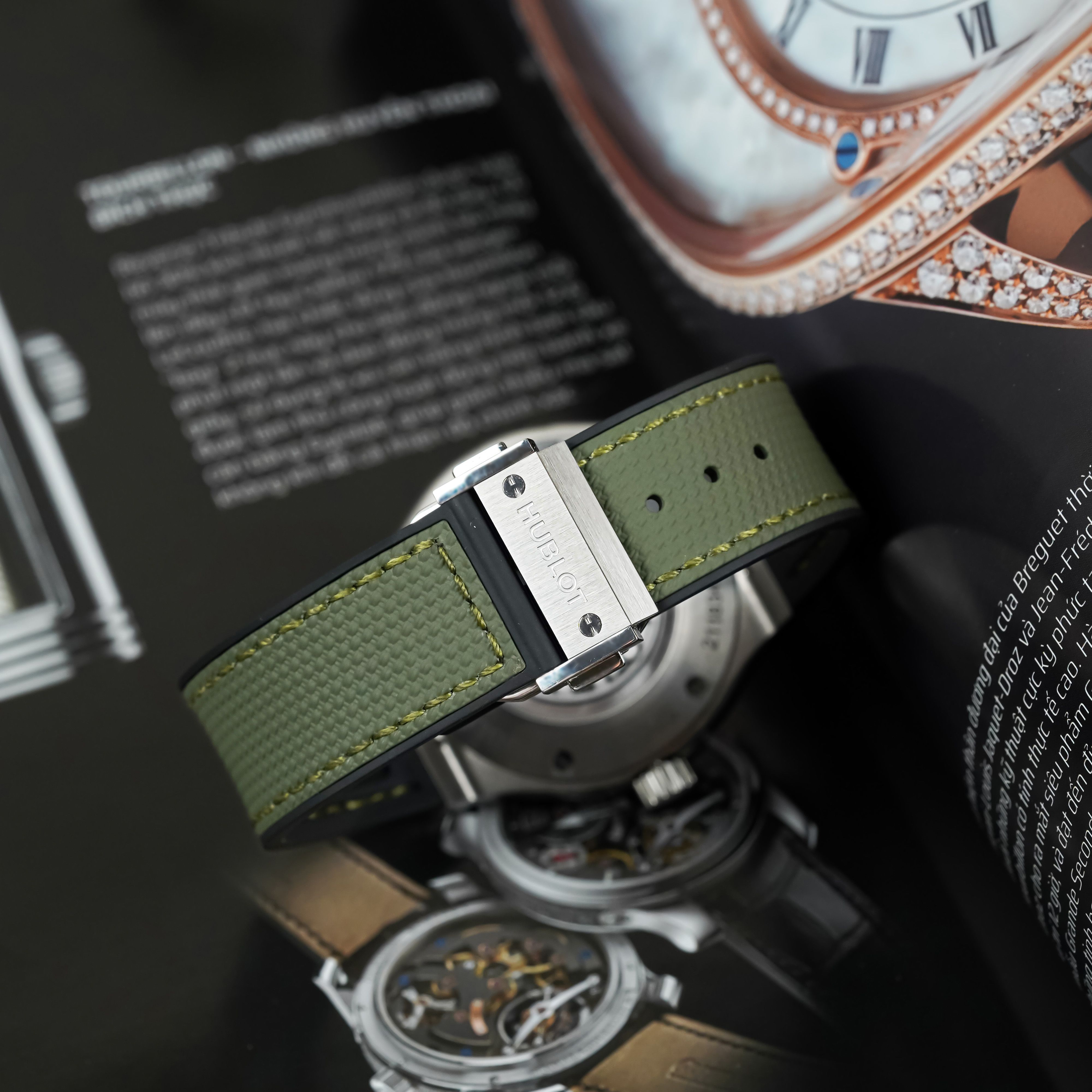 Review Dây Cao Su Màu Xanh Olive Cho Hublot Classic Fusion 3-Hands 42/45mm (Vân chéo)