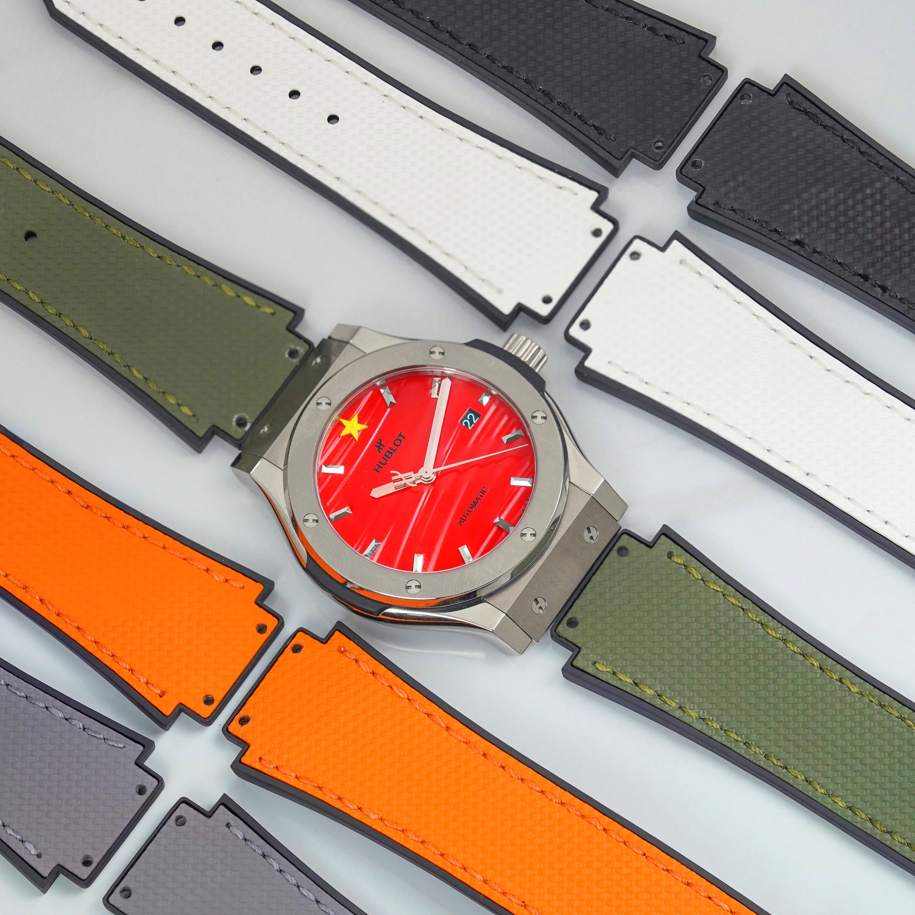 Dây Cao Su Màu Xanh Olive Cho Hublot Classic Fusion 3-Hands 42/45mm (Vân chéo)