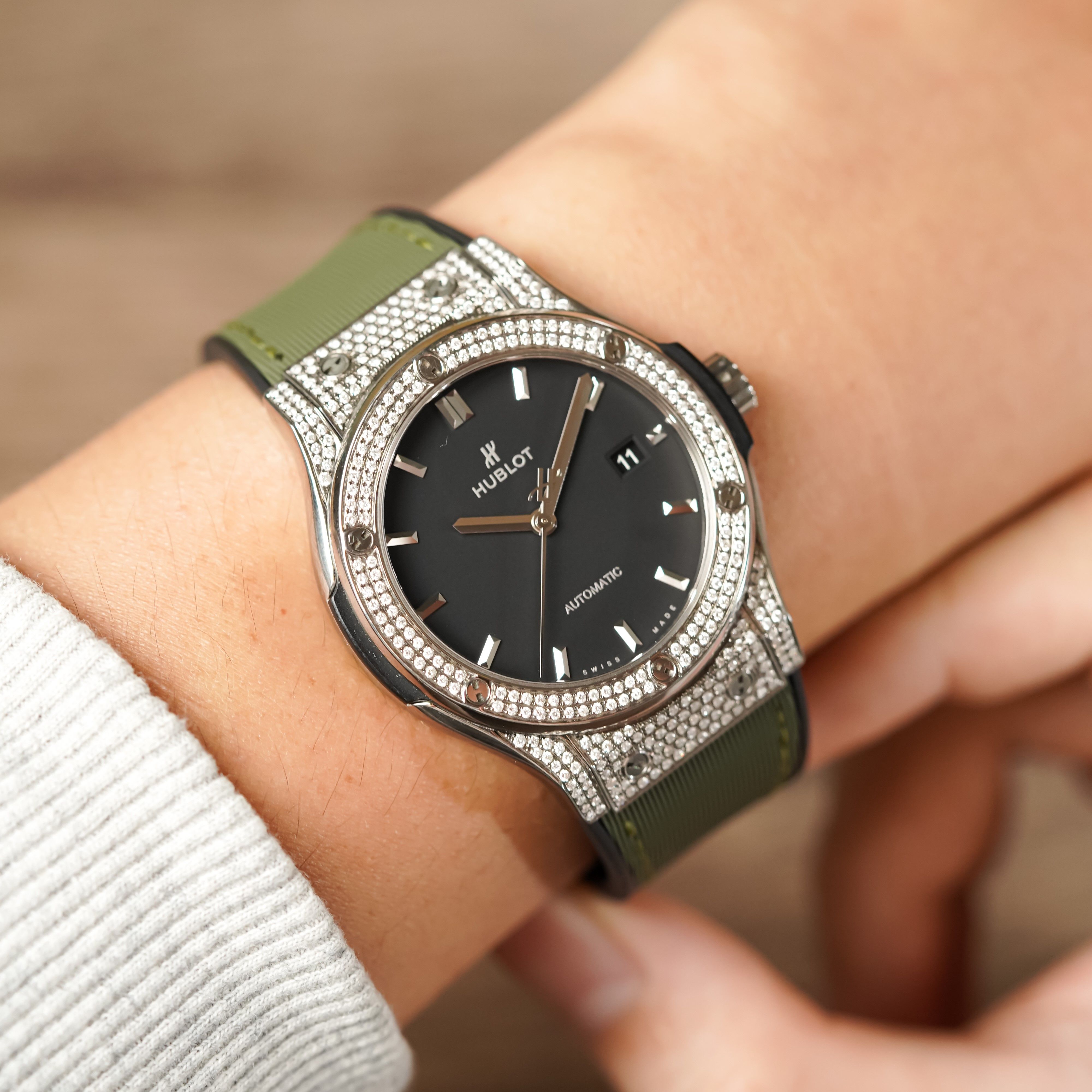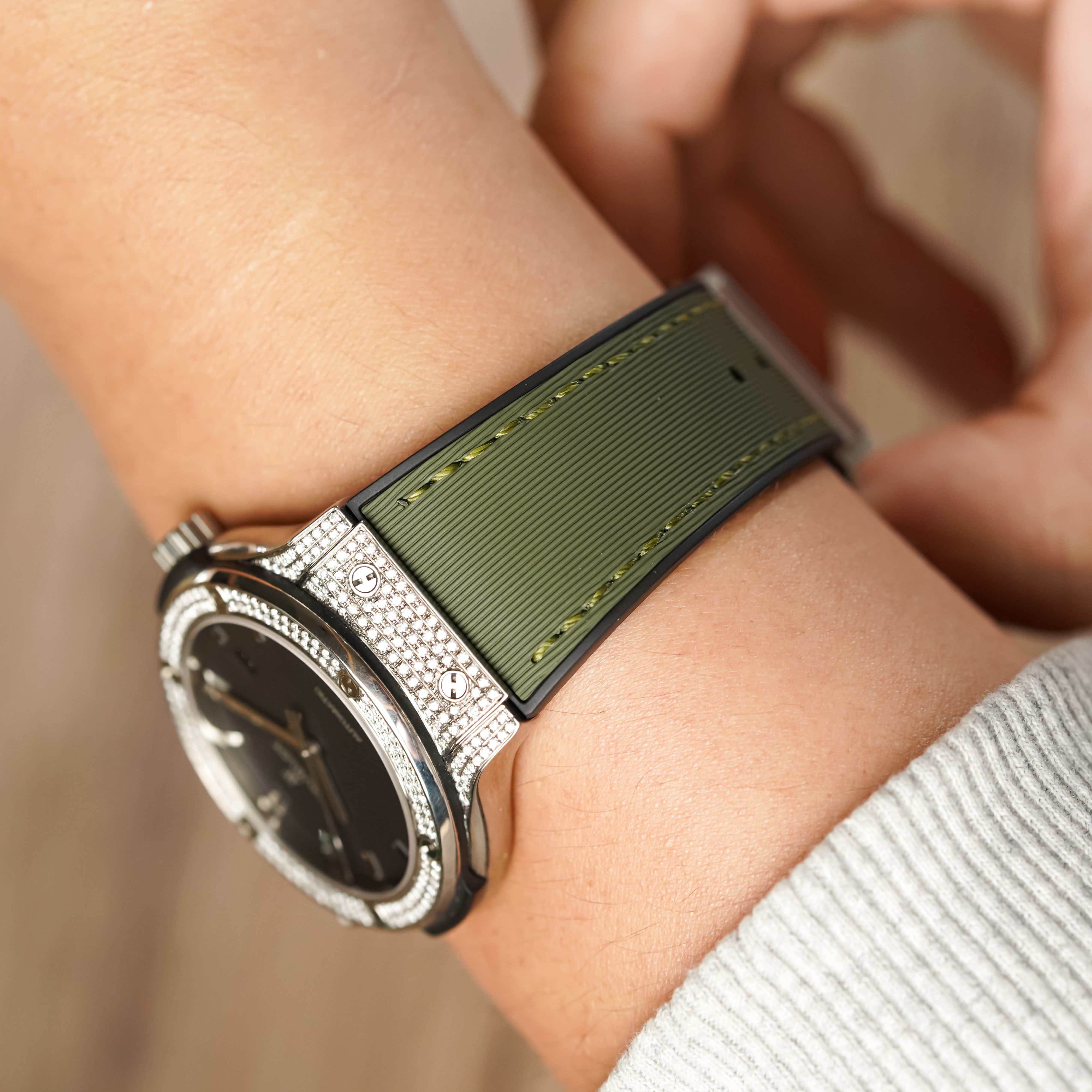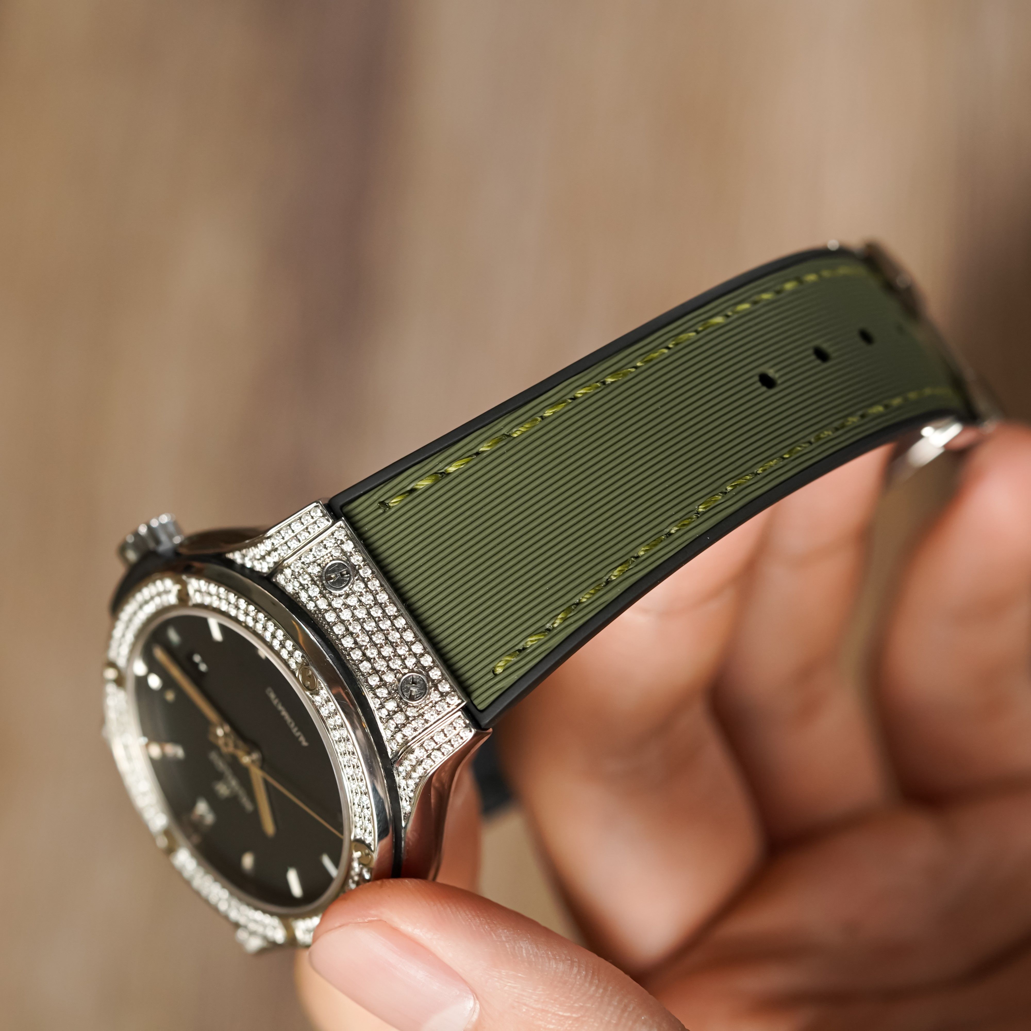 Review Dây Cao Su Màu Xanh Olive Cho Hublot Classic Fusion 3-Hands 42/45mm (Vân thẳng)