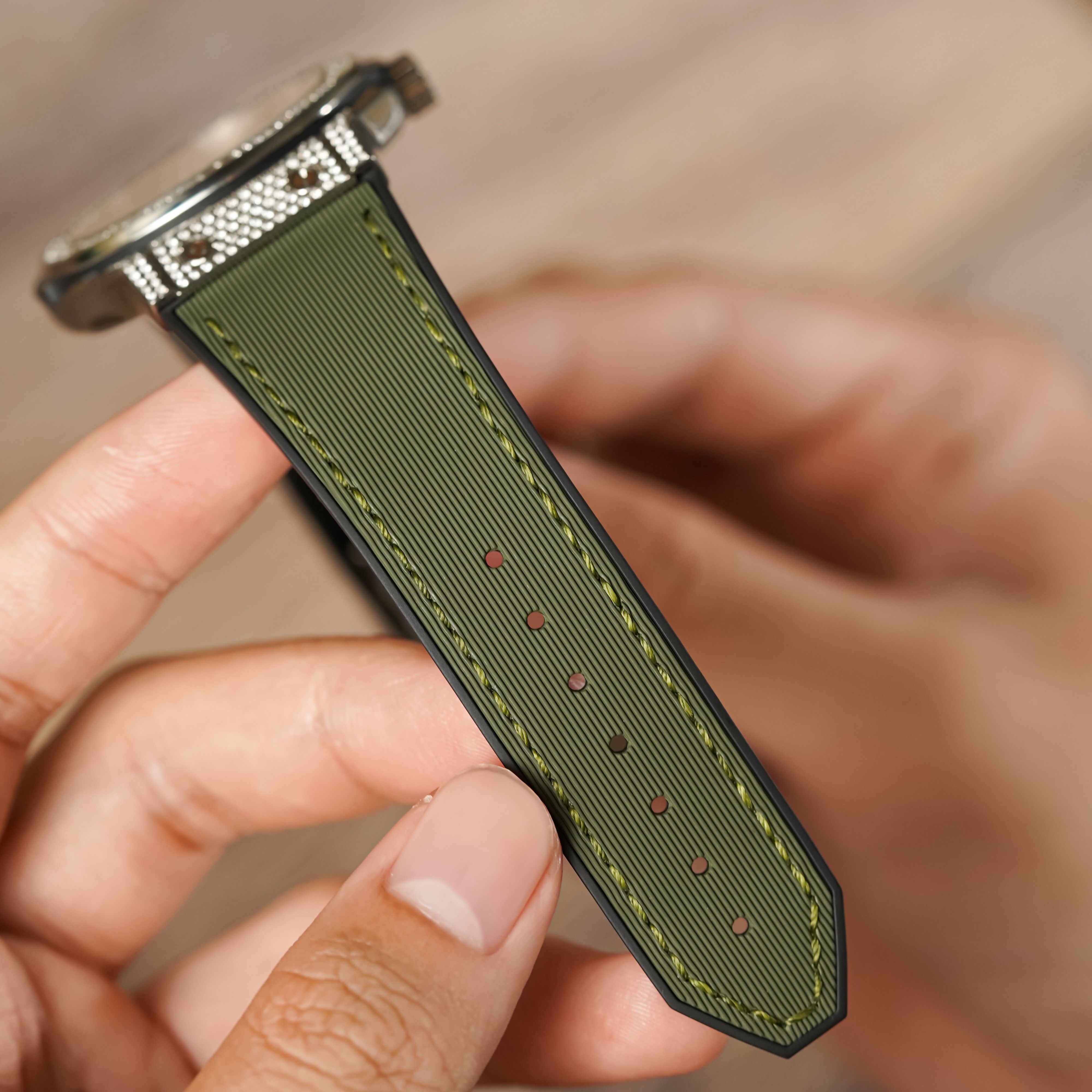 Trang chủ / Dây đồng hồ Hublot / Dây Cao Su Màu Xanh Olive Cho Hublot Classic Fusion 3-Hands 42/45mm (Vân thẳng)