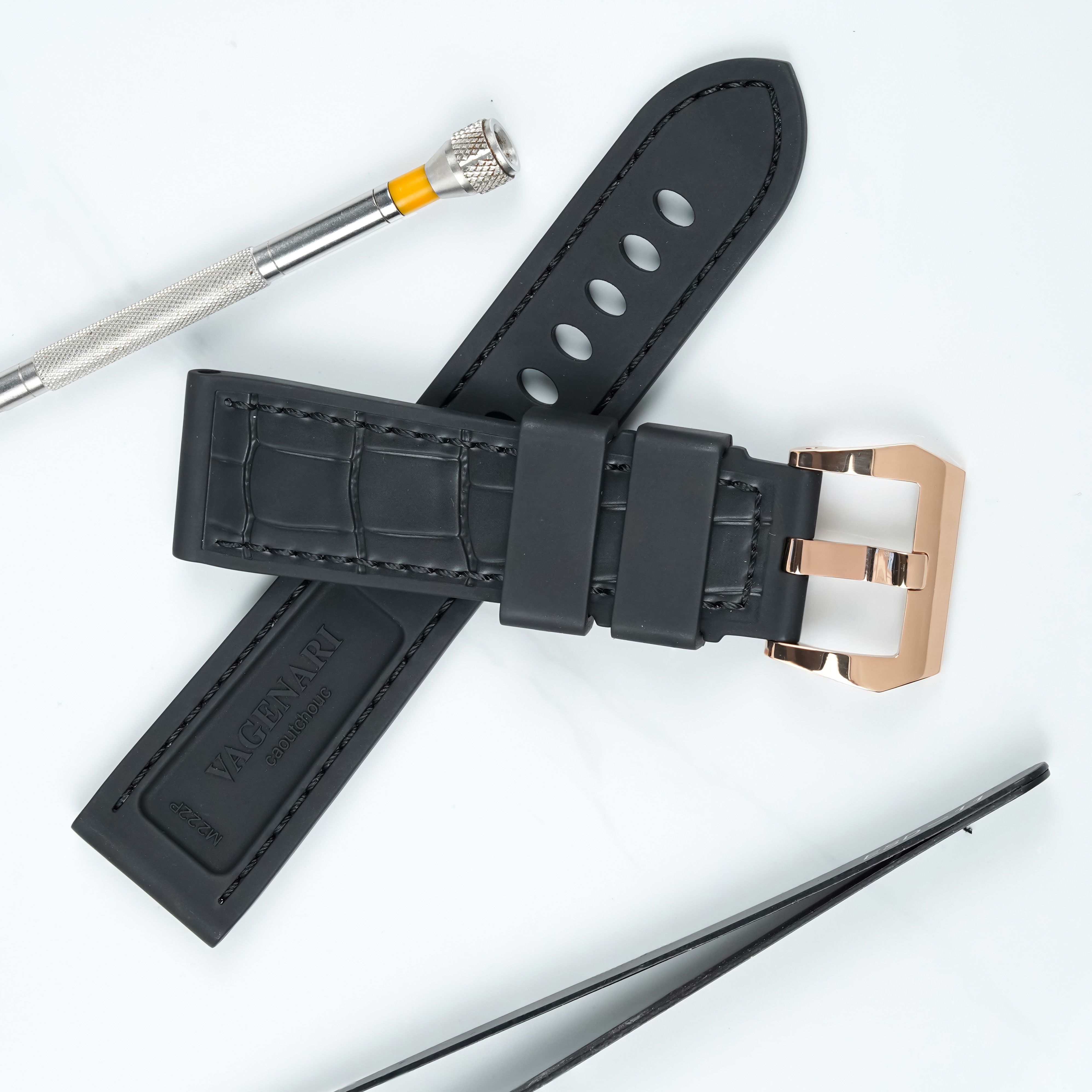 Review Dây Cao Su Vân Cá Sấu Màu Đen Cho Panerai Luminor 40mm 42mm