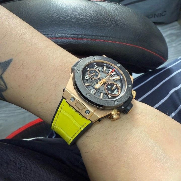 Dây Da Cá Sấu Đệm Cao Su Màu Vàng Cho Hublot Classic Fusion 3-Hands 42/45mm
