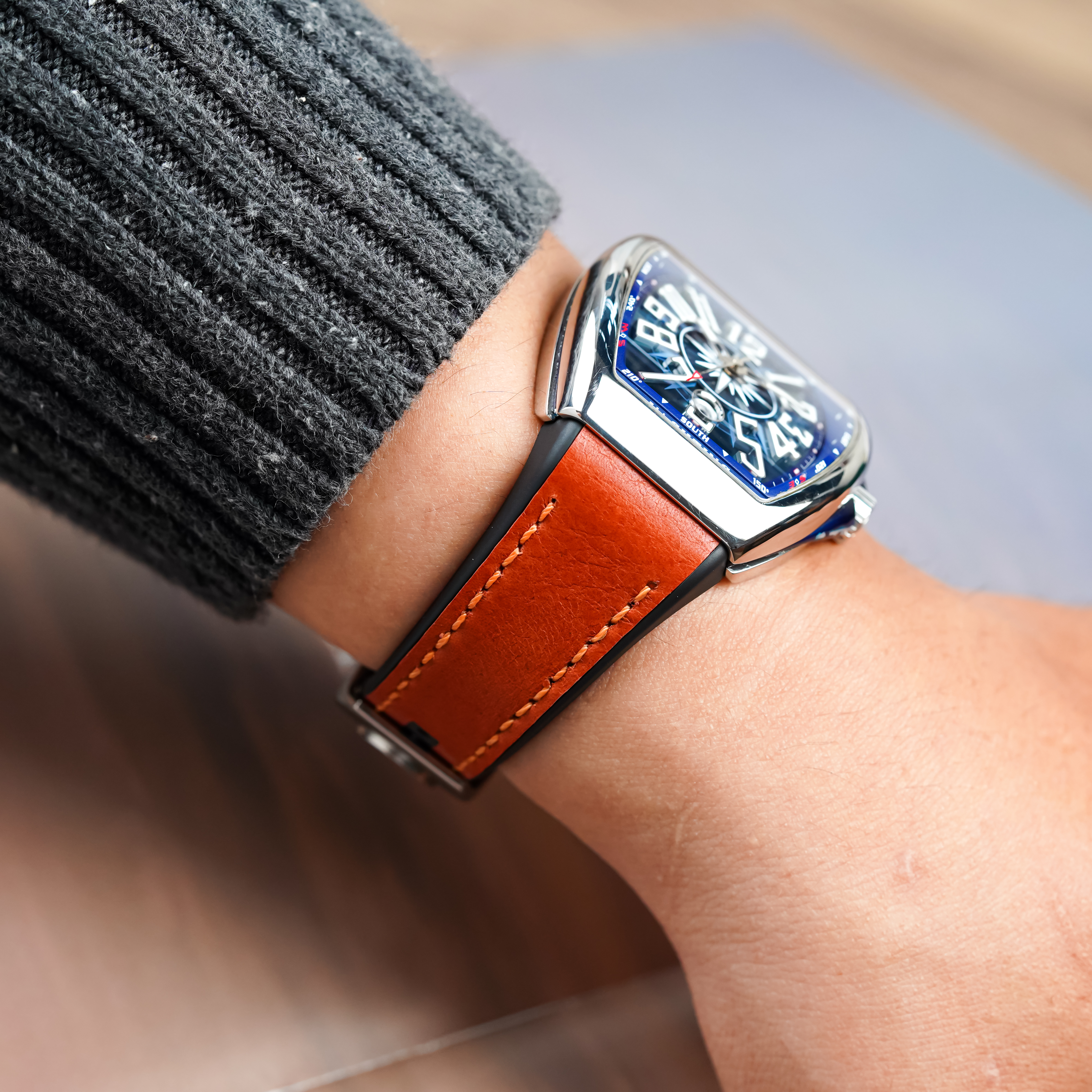 Trang chủ / Dây đồng hồ Franck Muller Vanguard / Dây Da Đệm Cao Su Màu Nâu Đỏ Cho Franck Muller Vanguard V41 Man