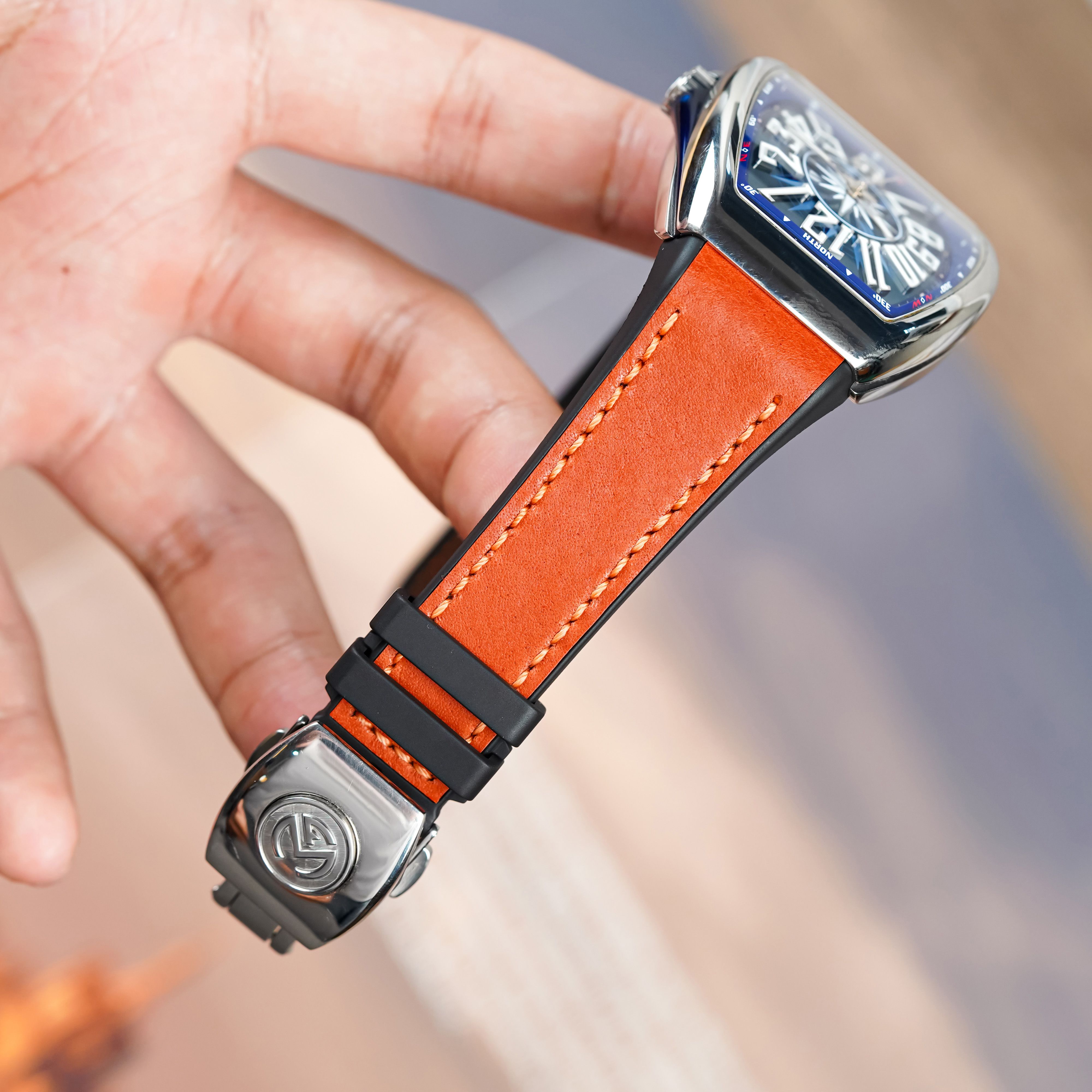 Dây Da Đệm Cao Su Màu Nâu Đỏ Cho Franck Muller Vanguard V41 Man