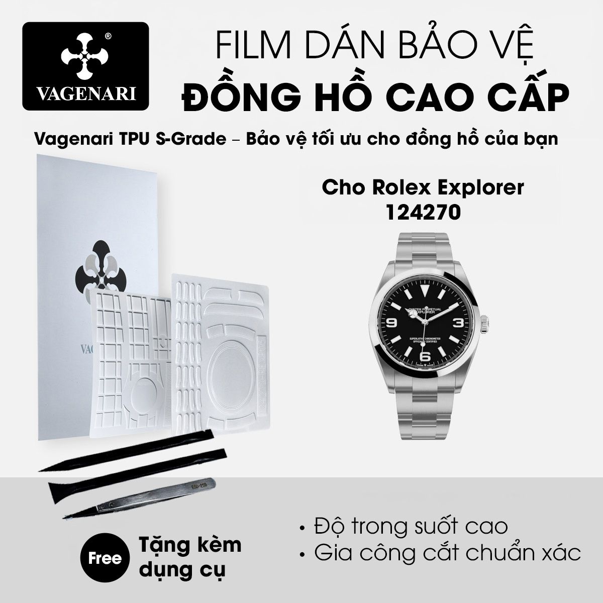 Trang chủ / Miếng dán bảo vệ đồng hồ / Film dán PPF TPU Vagenari S-Grade cho Rolex Explorer 124270